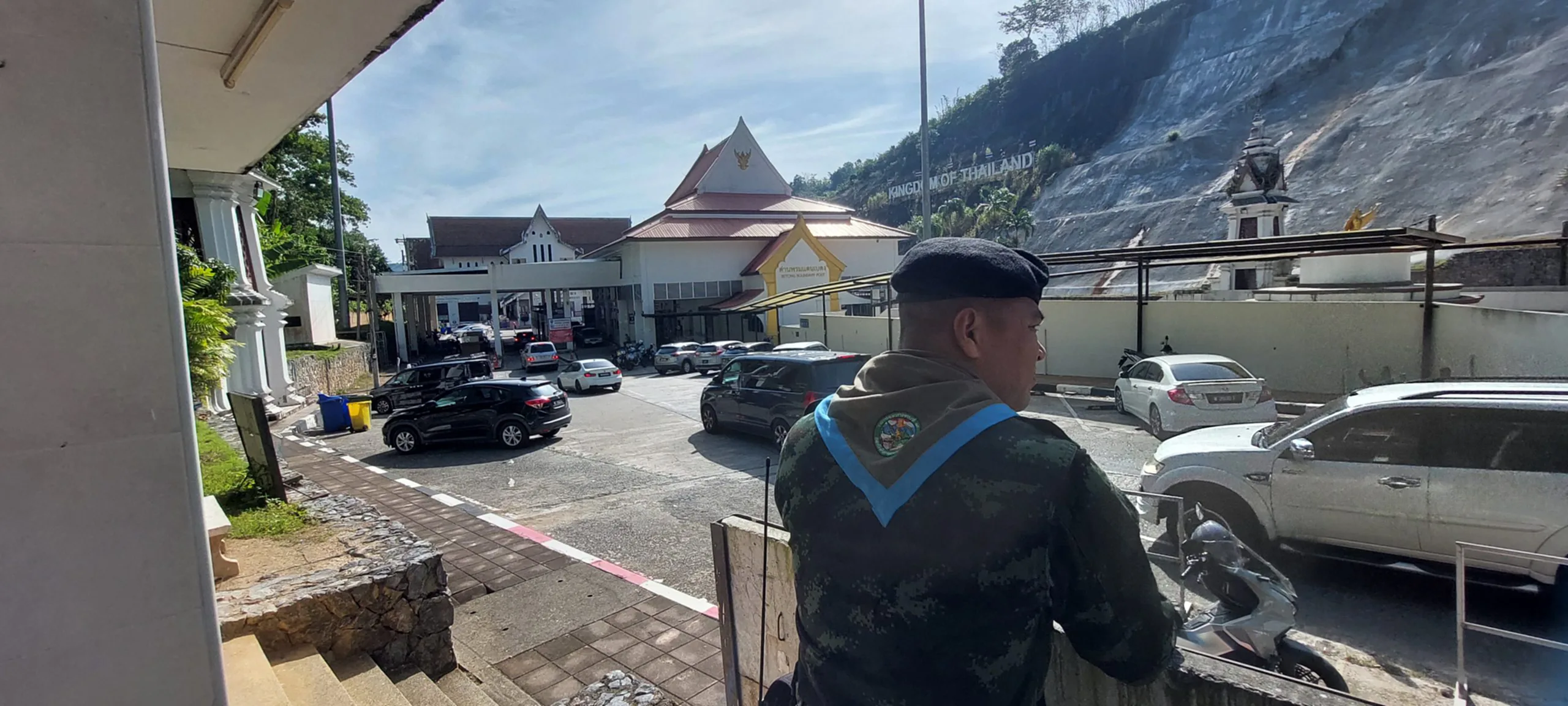 ที่ด่านตรวจคนเข้าเมืองเบตง อำเภอเบตง จังหวัดยะลา พ.ต.ท.กฤตกรอิชณน์ คงขำ สารวัตรด่านตรวจคนเข้าเมืองเบตง พร้อมด้วยเจ้าหน้าที่ทหารกองร้อยป้องกันชายแดนที่ 1 (กปช.1) และตำรวจตระเวนชายแดนที่ 445 ร่วมกันให้การต้อนรับนักท่องเที่ยว พร้อมยกระดับมาตรการดูแลความปลอดภัยแก่ประชาชนและนักท่องเที่ยวในช่วงเทศกาลปีใหม่ พ.ศ. 2569 เพื่อสร้างความมั่นใจและความประทับใจในการเดินทางท่องเที่ยว