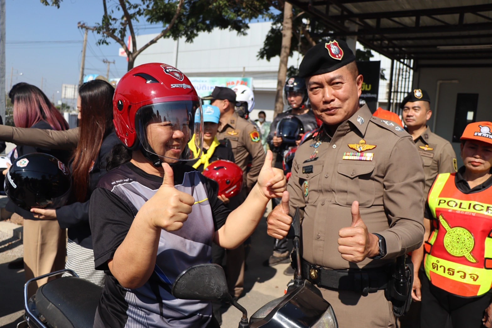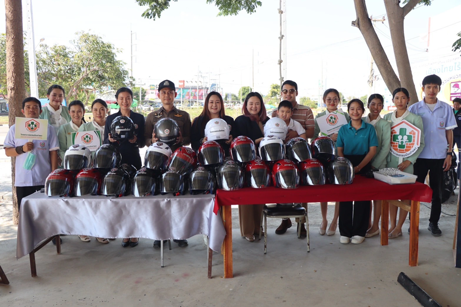 ในการนี้ พล.ต.ต.วรวัฒน์ มะลิ ได้มอบหมวกนิรภัยให้แก่ผู้ขับขี่รถจักรยานยนต์ในพื้นที่ เพื่อเป็นการรณรงค์และส่งเสริมวินัยจราจร เน้นย้ำความสำคัญของการสวมใส่หมวกนิรภัย 100% เพื่อลดความรุนแรงจากการสูญเสียหากเกิดอุบัติเหตุ โดยการดำเนินงานครั้งนี้ได้รับความร่วมมืออย่างดียิ่งจากโรงพยาบาลเอกชนเมืองกำแพง นำโดย คุณสกาวปราง์ จงสวัสดิ์ พุทธัง ผู้อำนวยการโรงพยาบาลฯ พร้อมด้วย คุณตรึงหทัย จงสวัสดิ์ รองผู้อำนวยการฝ่ายการแพทย์และฝ่ายการพยาบาล และ ภญ.มธุรวาท สมชัยมงคล รองผู้อำนวยการฝ่ายเภสัชกรรมและเทคนิคบริการ ที่นำหมวกนิรภัยมาร่วมสนับสนุนภารกิจด้านความปลอดภัยในการใช้รถใช้ถนนของพี่น้องประชาชน