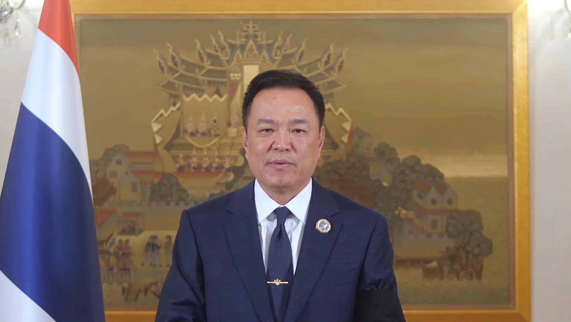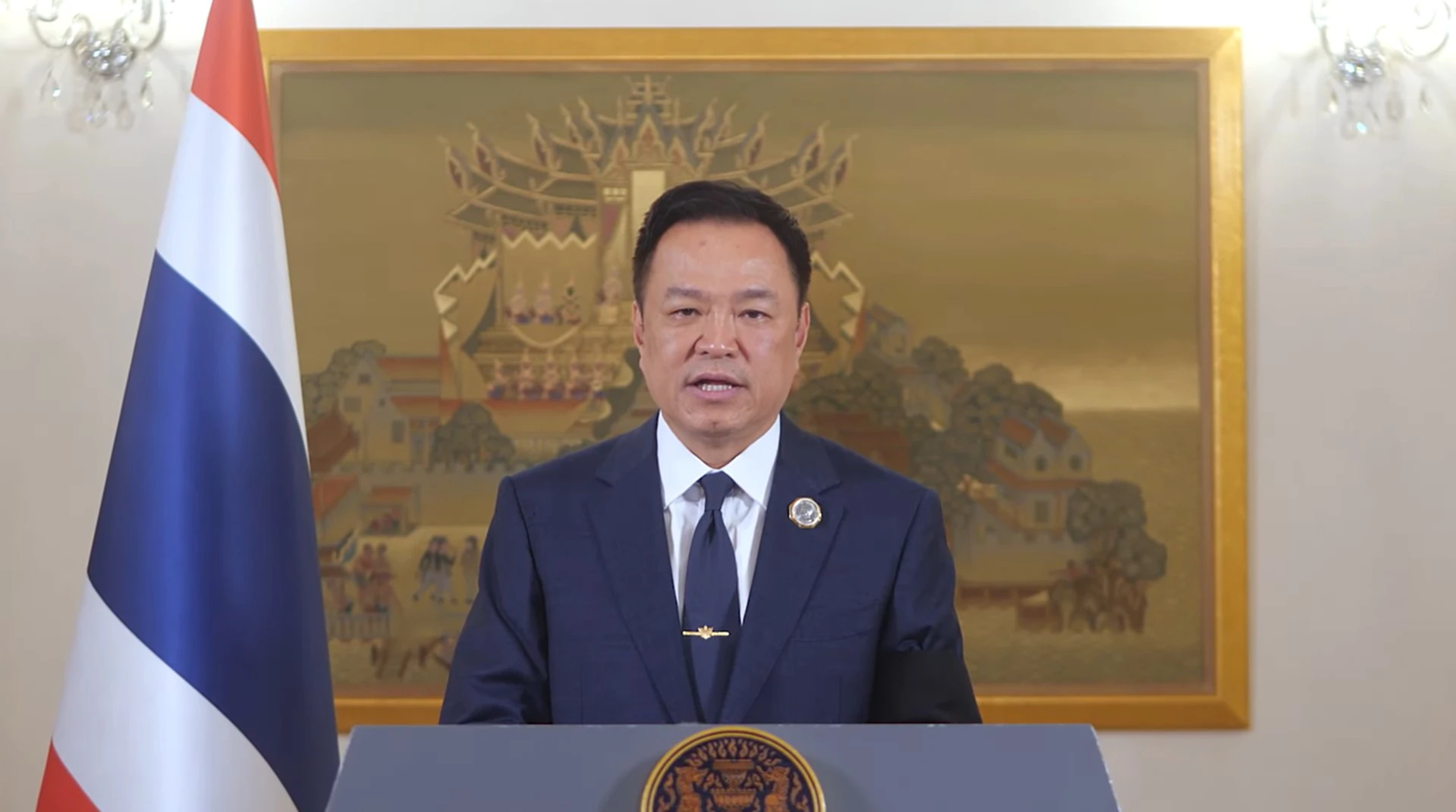 “ในโอกาสนี้ผมขออัญเชิญคุณพระศรีรัตนตรัยและสิ่งศักดิ์สิทธิ์ทั้งหลายที่ท่านนับถือ รวมถึงขอพระบารมีแห่งองค์พระบาทสมเด็จพระเจ้าอยู่หัว สมเด็จพระนางเจ้าฯ พระบรมราชินี จงได้โปรดบันดาลให้พี่น้องประชาชนมีความสุข ความเจริญ คุ้มครองทหารหาญของเรา ให้ปลอดภัยจากอันตรายทั้งปวง และเสริมพลังให้พวกเราทุกคนก้าวพ้นอุปสรรคใด ๆ ที่กำลังเผชิญอยู่ไปได้ ด้วยดี ขอเชิญชวนพี่น้องประชาชนชาวไทยทุกคน ร่วมกันตั้งจิตอธิษฐาน อัญเชิญอำนาจแห่งพระสยามเทวาธิราช และพระบรมเดชานุภาพ แห่งสมเด็จพระบูรพมหากษัตริยาธิราชเจ้า ทุกพระองค์ โปรดอภิบาลบันดาลดล ให้พระบาทสมเด็จพระเจ้าอยู่หัว สมเด็จพระนางเจ้าฯ พระบรมราชินี และพระบรมวงศานุวงศ์ทุกพระองค์ ทรงพระเจริญพร้อมด้วยจตุรพิธพรชัย ทรงพระเกษมสำราญ มีพระราชประสงค์จำนงหมายสิ่งใด ขอจงสัมฤทธิผลดั่งพระราชหฤทัยปรารถนา สถิตเป็นมิ่งขวัญร่มเกล้า แก่ปวงพสกนิกรชาวไทยตราบกาลนาน สวัสดีปีใหม่ครับ”