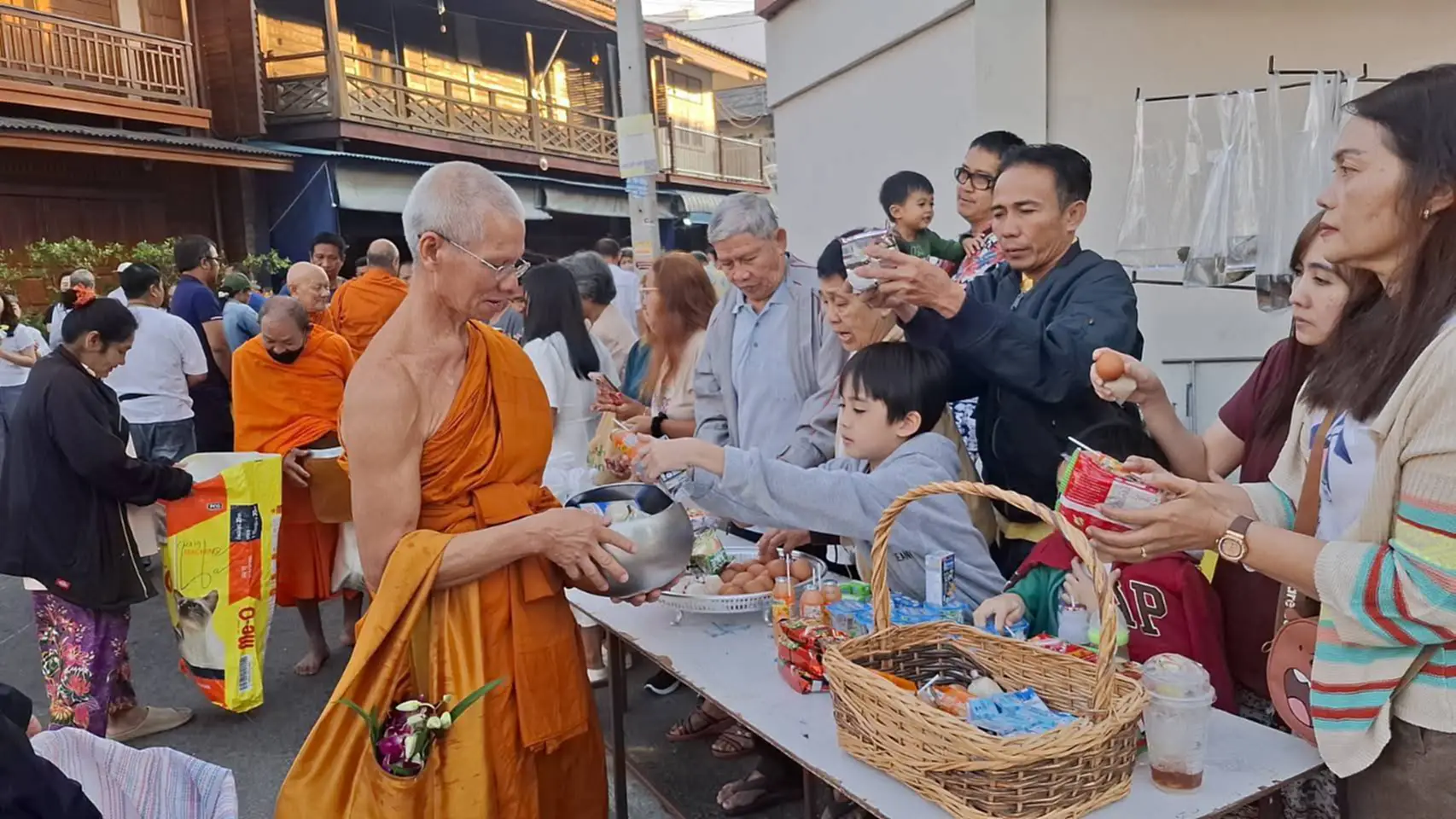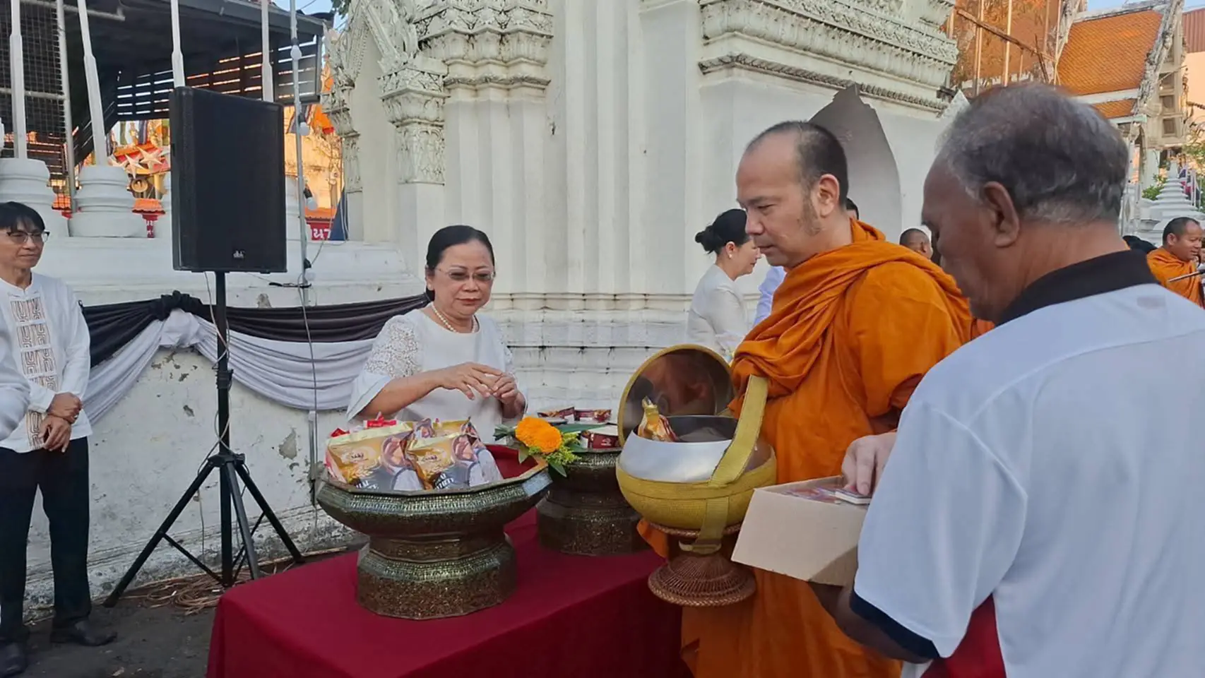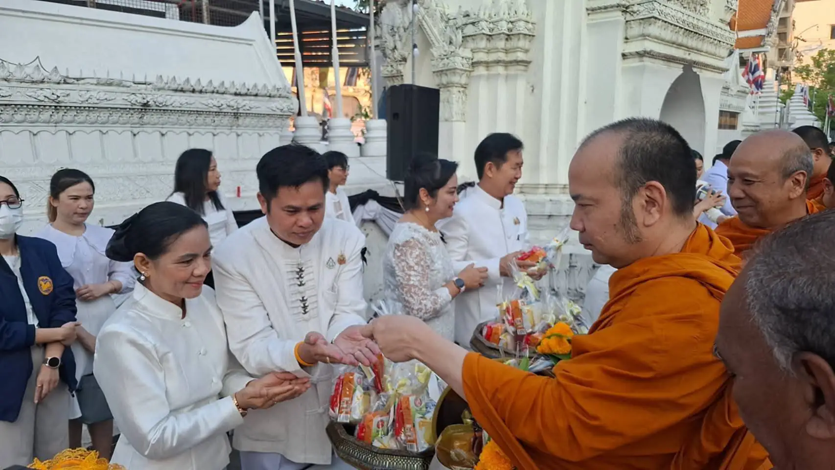 จากนั้น ผู้ว่าราชการจังหวัดเพชรบุรี พร้อมด้วยคณะผู้บริหาร หัวหน้าส่วนราชการ และประชาชน ได้ร่วมกันทำบุญตักบาตรแด่พระสงฆ์ เพื่อความเป็นสิริมงคลในการเริ่มต้นพุทธศักราชใหม่