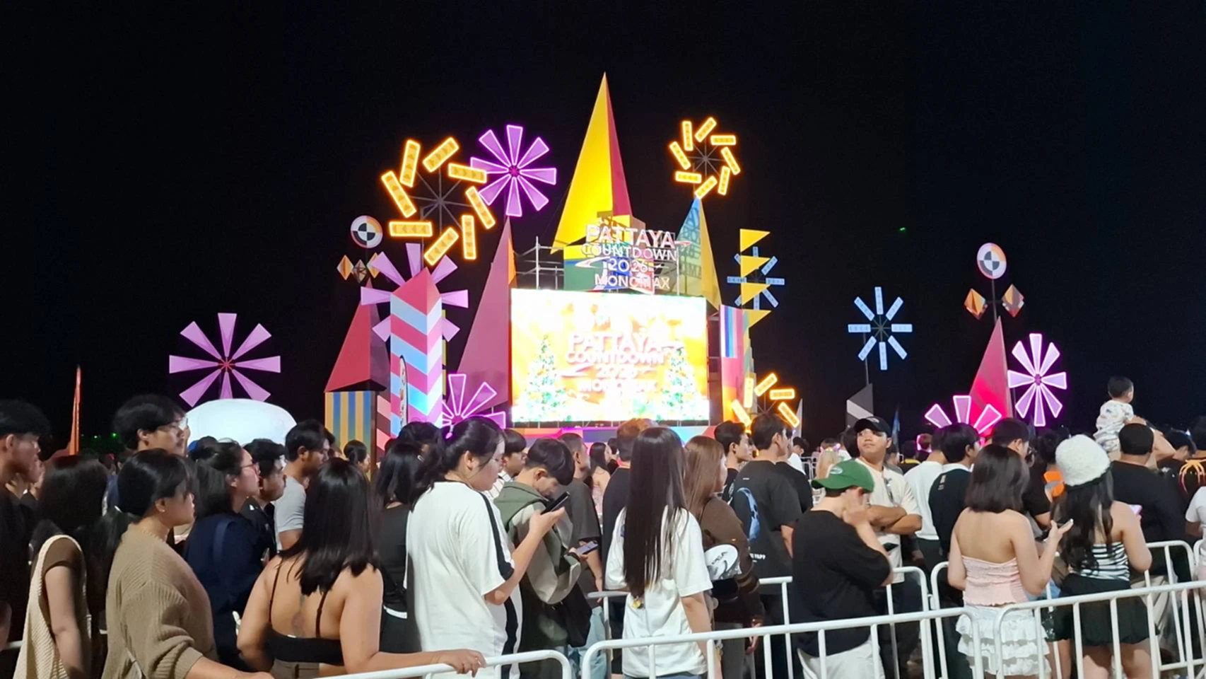 เมื่อค่ำคืนวันที่ 31 ธันวาคม 2568 บรรยากาศงาน Pattaya Countdown 2026 ที่บริเวณชายหาดพัทยากลาง เมืองพัทยา จ.ชลบุรี เป็นไปอย่างคึกคักตั้งแต่ช่วงเย็น โดยมีนักท่องเที่ยวทั้งชาวไทยและชาวต่างชาติเดินทางมาร่วมงานและจับจองพื้นที่บริเวณชายหาดกันเป็นจำนวนมาก ส่งผลให้พื้นที่โดยรอบแน่นขนัดด้วยผู้ร่วมงานที่มารอชมการแสดงคอนเสิร์ต และร่วมฉลองส่งท้ายปีเก่าต้อนรับปีใหม่