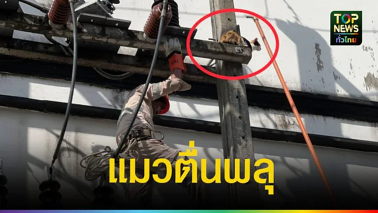 เจ้าหน้าที่การไฟฟ้าฯช่วยแมวตกเสาไฟแรงสูง ปลอดภัยไร้บาดเจ็บ