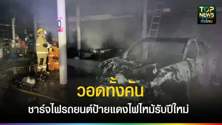 นครปฐม-ช็อค รับปีใหม่ เสียบชาร์จไฟรถยนต์ป้ายแดงไฟไหม้ วอดทั้งคัน