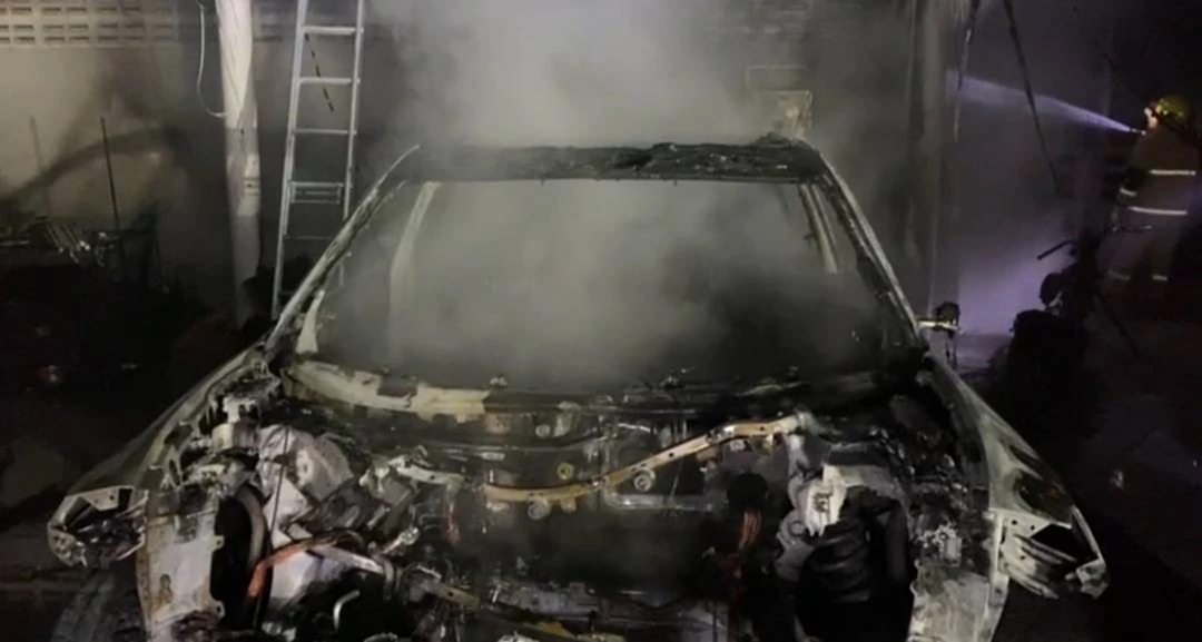 จึงพบว่ารถยนต์ไฟฟ้ากำลังถูกไฟลุกไหม้อย่างรุนแรง จึงรีบโทรศัพท์แจ้งตำรวจเพื่อขอความช่วยเหลือ ส่วนรถยนต์คันที่เสียหาย เป็นรถยนต์ไฟฟ้ายี่ห้อดังยี่ห้อหนึ่ง ตนได้ซื้อมาใหม่ป้ายแดงในราคา 1,4 00,000 บาท น่าแปลกใจมาก รถยนต์ซื้อมาใหม่ๆเมื่อวานก่อนนี้เอง ทำไมถึงไฟลุกไหม้ได้