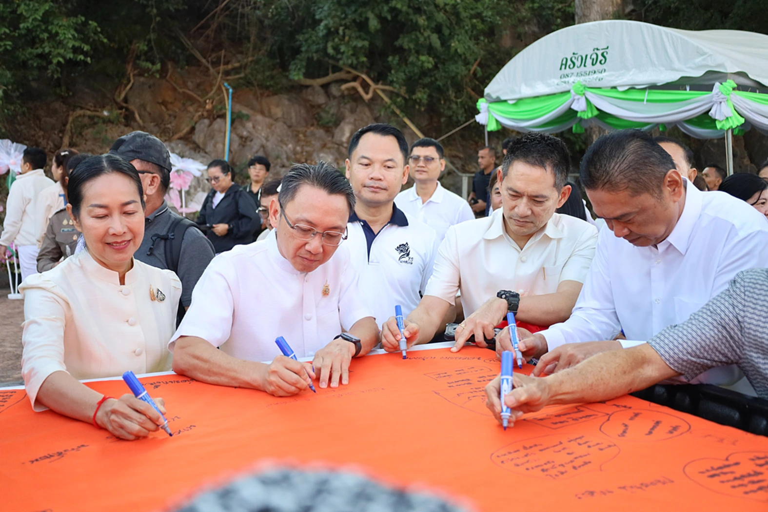 วันที่ 1 ม.ค. 2569 ที่บริเวณหน้าเขาช่องกระจก อ.เมืองประจวบคีรีขันธ์ นางอภิญญา เอี่ยมอำภา รองผู้ว่าราชการจังหวัดฯ เป็นประธานเปิดกิจกรรม “ขึ้นเขาห่มพระ พาท่องช่องกระจก เถลิงศกรับพร ประจำปี 2569” โดยมีคณะผู้บริหาร ข้าราชการ ประชาชน และนักท่องเที่ยวทั้งชาวไทยและชาวต่างชาติ รวมทั้งนักเรียน นักศึกษา ร่วมเขียนชื่อของตนเองและคนในครอบครัวลงบนผืนผ้าเหลือง ก่อนอัญเชิญผืนผ้าขึ้นสู่ยอดเขาช่องกระจก ผ่านบันได 396 ขั้น ห่มองค์พระเจดีย์ที่บรรจุพระบรมสารีริกธาตุ พร้อมกราบสักการะพระพุทธมงคลคีรีขันธ์ และกรมหลวงชุมพร เพื่อความเป็นสิริมงคลแก่ชีวิตและครอบครัวในวันขึ้นปีใหม่