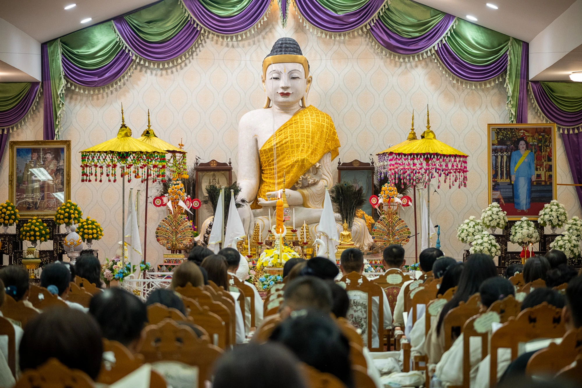“ ขอพระพุทธคุ้มเกล้าเราทั้งผอง ขอพระธรรมเรืองรองส่องทั่วหล้า ขอพระสงฆ์ทรงบุญหนุนนำพาทุกชีวาสุขสันต์นิรันดร์เทอญ…”
