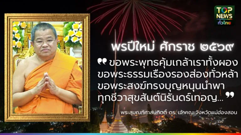 วันที่ 1 มกราคม 2569 พระสุมณศาสนกิตติ์ ดร.เจ้าคณะจังหวัดแม่ฮ่องสอน เจ้าอาวาสวัดพระธาตุดอยกองมู เจริญพรปีใหม่ เพื่อความเป็นสิริมงคล รับพุทธศักราชใหม่ แด่พุทธบริษัท ศรัทธา ญาติโยมทั้งหลาย