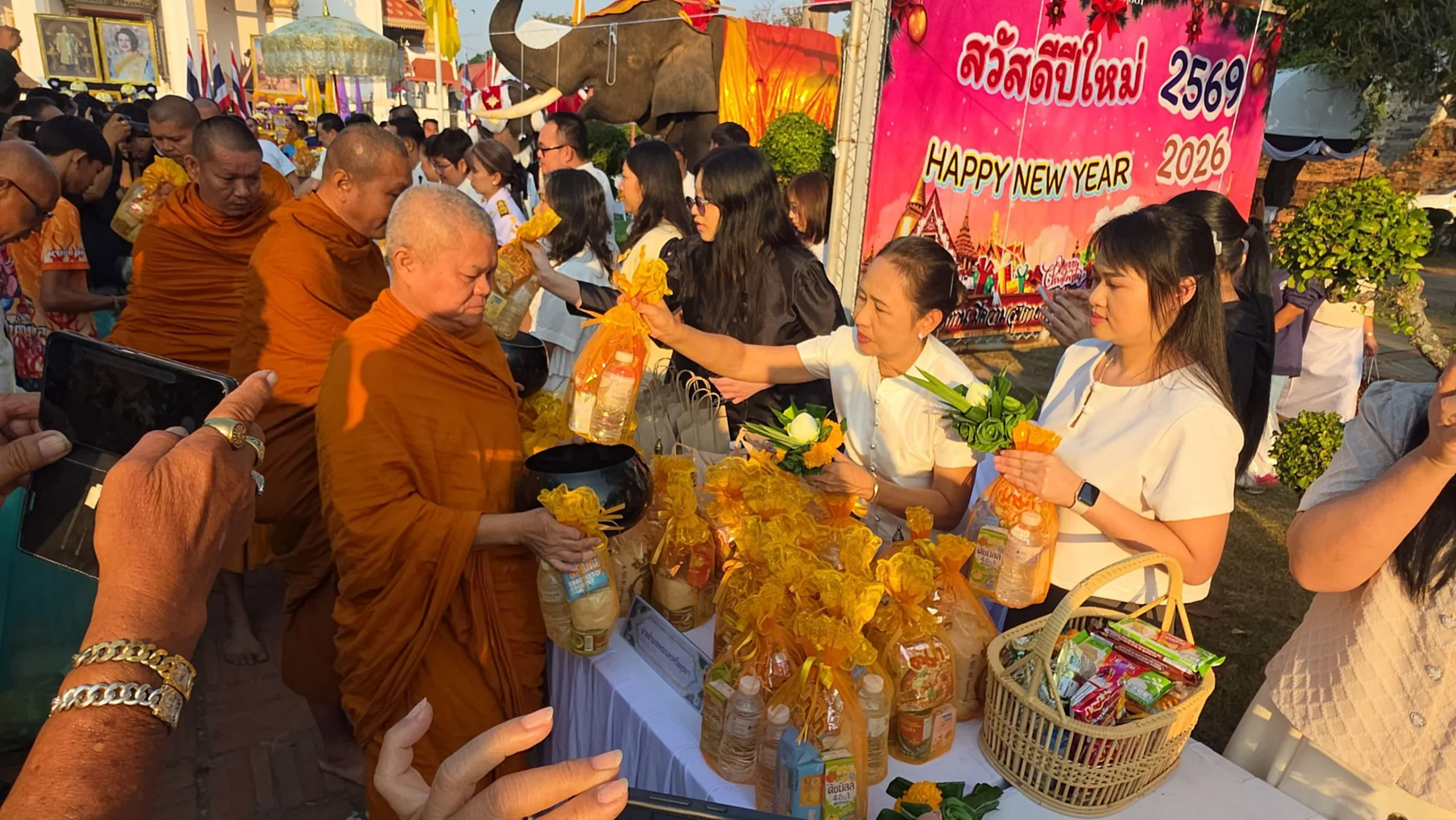 วันที่ 1 มกราคม 2569 นายชวนินทร์ วงศ์สถิตจิรกาล ผู้ว่าราชการจังหวัดพระนครศรีอยุธยา พร้อมด้วยนางศุทธิกานต์ วงศ์สถิตจิรกาล นายกเหล่ากาชาดจังหวัดพระนครศรีอยุธยา พร้อมคณะรองผู้ว่าราชการจังหวัดพระนครศรีอยุธยา นำประชาชนร่วมพิธีทำบุญตักบาตรข้าวสารอาหารแห้งแด่พระสงฆ์ จำนวน 573 รูป เนื่องในโอกาสวันขึ้นปีใหม่ ประจำปี 2569 โดยมี ว่าที่ร้อยตรี ดร.สมทรง สรรพโกศลกุล นายกเทศมนตรีนครพระนครศรีอยุธยา รองนายกเทศมนตรีนครพระนครศรีอยุธยา สมาชิกสภาเทศบาลฯ หัวหน่วยงานราชการ พนักงานเจ้าหน้าที่ และพุทธศาสนิกชน ประชาชนทั่วไป จำนวนกว่า 1,000 คน เข้าร่วม