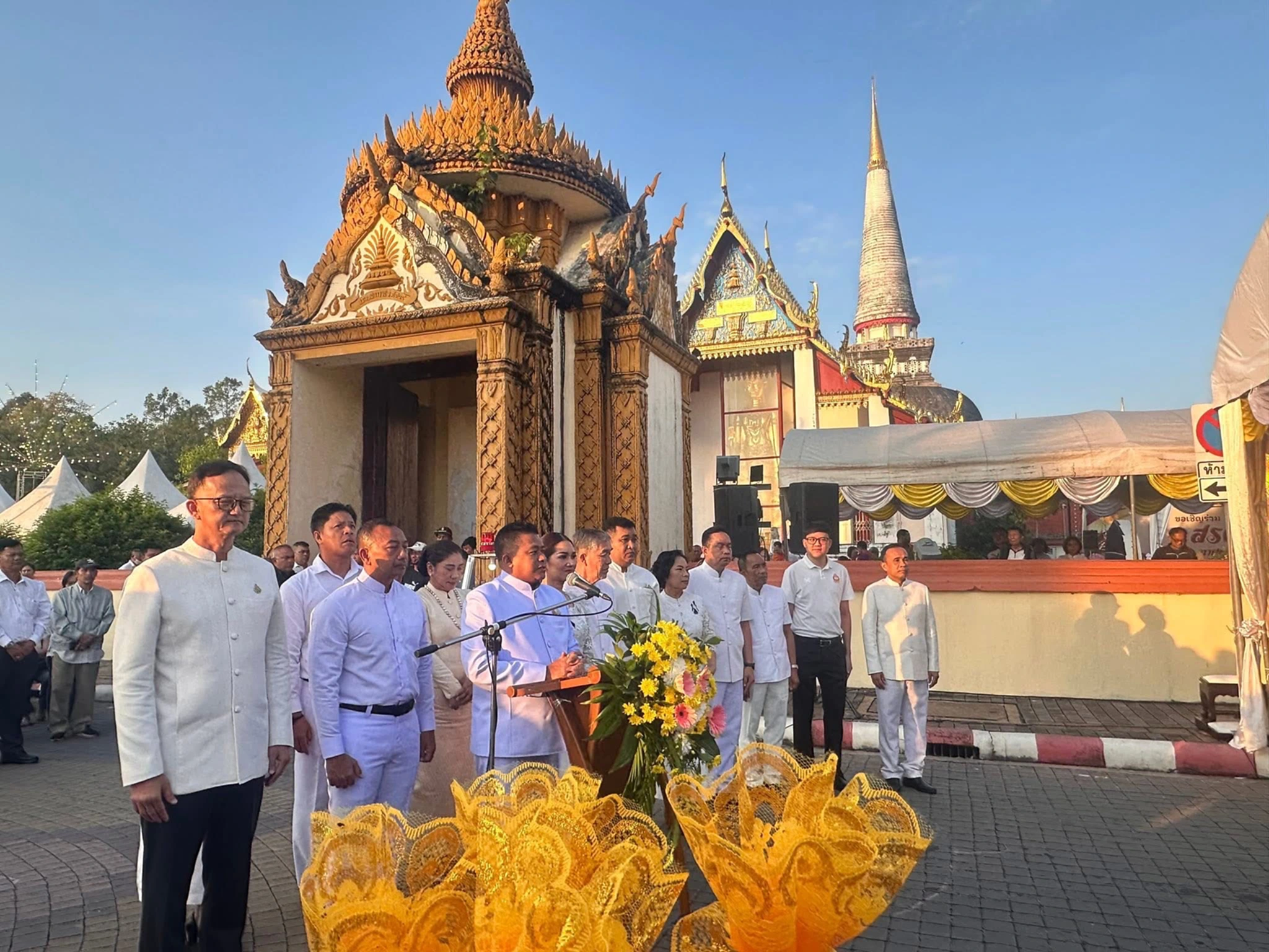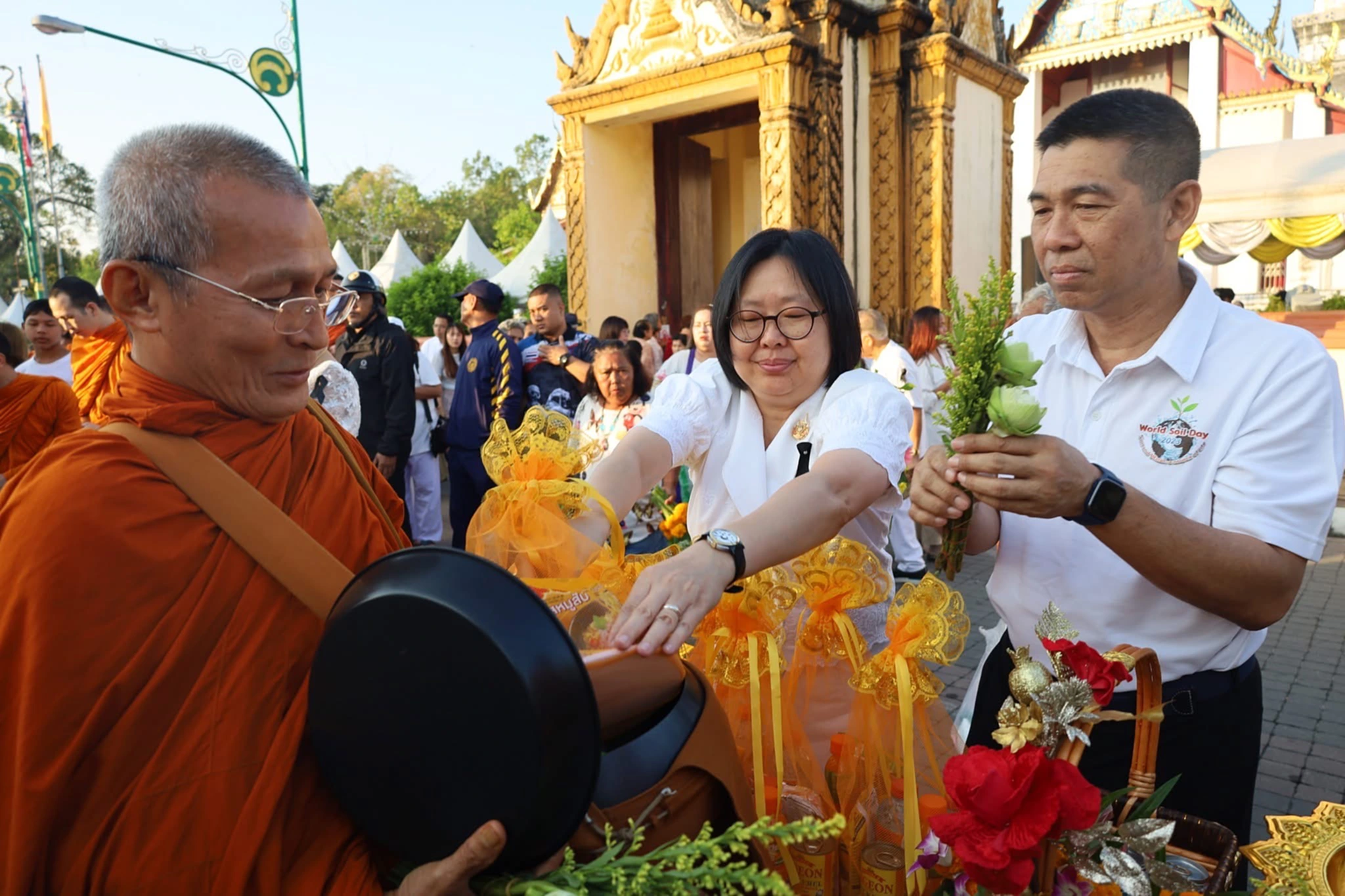 โดยมีพระเทพสิริวชิรเวที เจ้าคณะภาค 16 (ธ) ผู้ช่วยเจ้าอาวาสวัดพระมหาธาตุ วรมหาวิหาร เป็นประธานสงฆ์ ได้แสดงสัมโมทนียกถาให้พรปีใหม่ 2569 ชี้แนะแนวทางการดำเนินชีวิตด้วยสติ ปัญญา และความเพียร เพื่อสร้างความสุข ความเจริญ และความปลอดภัยในชีวิต ก่อนนำคณะสงฆ์ประกอบพิธีทางศาสนาและออกรับบิณฑบาต