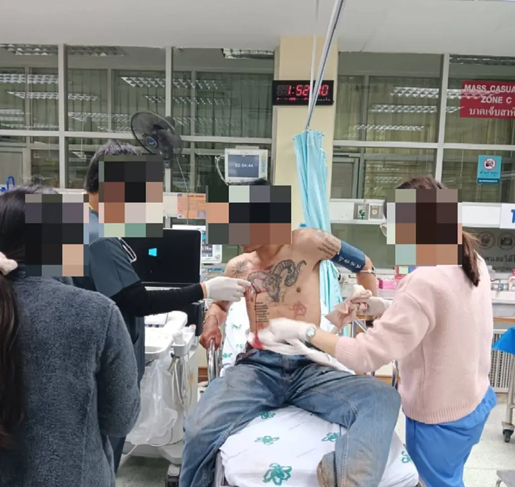ผู้ได้รับบาดเจ็บทราบชื่อคือ นายวิทย์ (นามสมมุติ) อายุ 20 ปี หมู่ 1 ตำบลอวน อำเภอปัว จังหวัดน่าน ถูกแทงบริเวณใต้ราวนมด้านขวาและใต้ชายโครงขวา อาการสาหัส เจ้าหน้าที่กู้ภัยจึงเร่งนำส่งรักษาต่อที่ โรงพยาบาลสมเด็จพระยุราชปัว