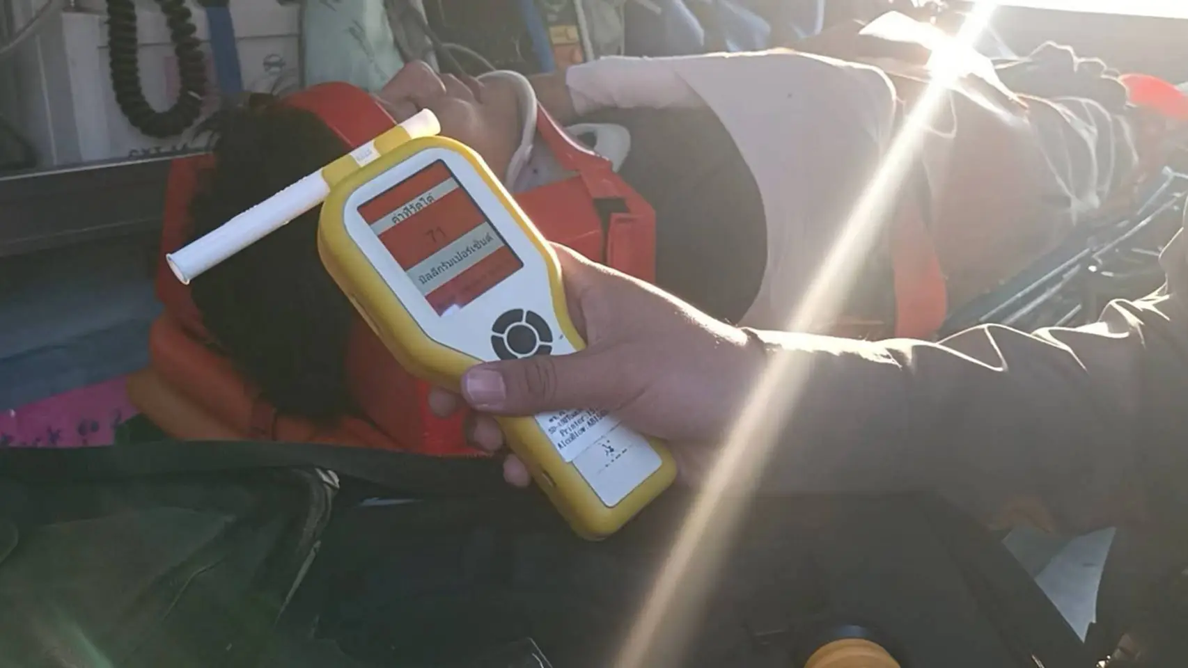 เบื้องต้นเจ้าหน้าที่ตำรวจได้ทำการตรวจวัดแอลกอฮอล์ พบว่ามีอยู่ที่ 71 มิลลิกรัมเปอร์เซ็นต์ ซึ่งเกินกว่าที่กฏหมายกำหนด แล้วตรวจภายในรถพบเบียร์อีก จำนวน 1 ลัง แตกกระจาย โดยเจ้าหน้าที่ได้แจ้งข้อกล่าวหาเมาแล้วขับ และส่งตัวไปตรวจร่างกายที่โรงพยาบาลสวรรค์ประชารักษ์