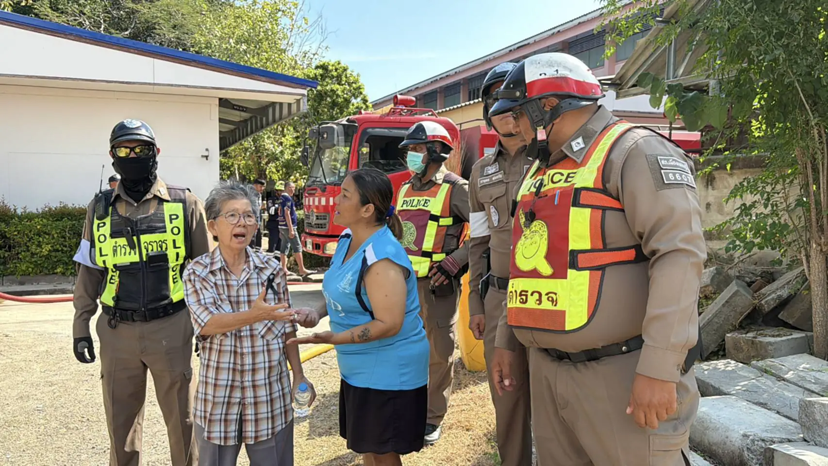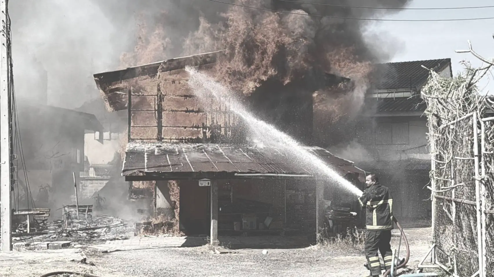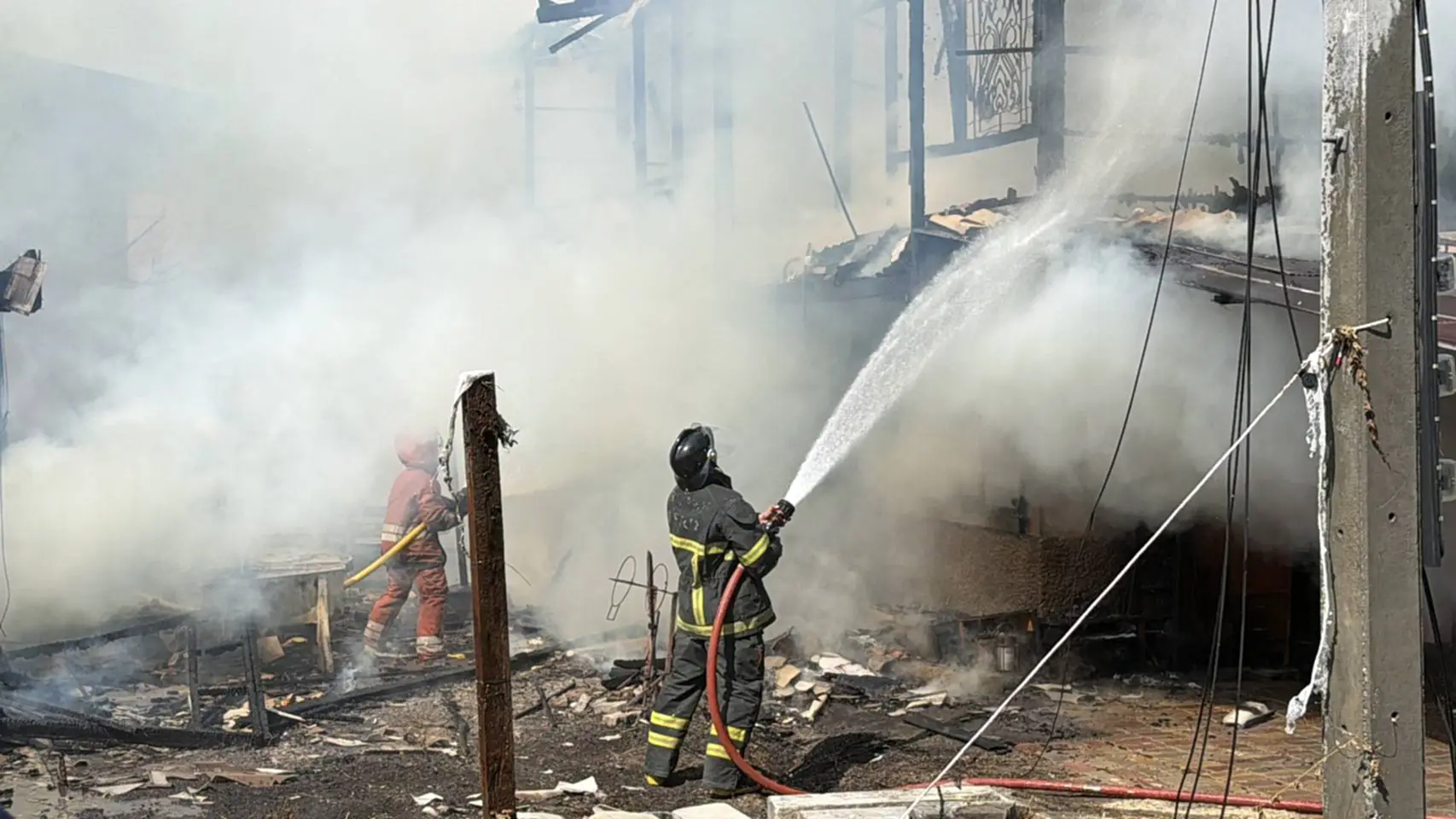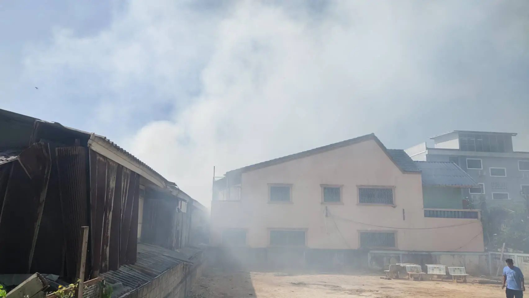 ที่เกิดเหตุเป็นบ้านไม้ 2 ชั้น จำนวน 2 หลัง ซึ่งเป็นเชื้อเพลิงชั้นดี ถูกเพลิงไหม้อย่างรุนแรง และมีควันสีดำโพยพุ่งออกมาเป็นจำนวนมาก นอกจากนี้ยังมีเสียงระเบิดดังออกมาเป็นระยะ เจ้าหน้าที่ดับเพลิง และหน่วยกู้ภัย