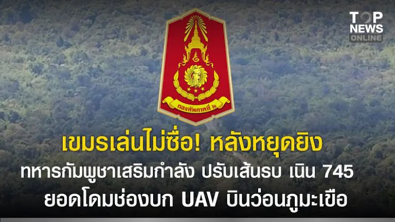 เขมรเล่นไม่ซื่อ! "กองทัพภาคที่ 2 " ตรวจพบหลังหยุดยิง ทหารกัมพูชาเสริมกำลัง ปรับเส้นรบ เนิน 745 ยอดโดมช่องบก UAV บินว่อนภูมะเขือ