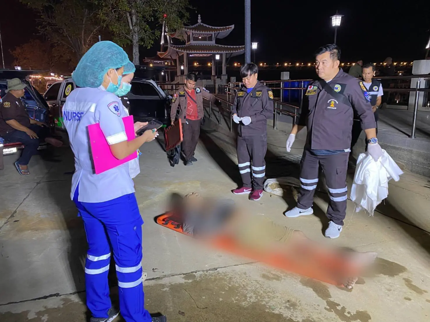 เพื่อนที่จมน้ำสูญหาย ชื่อนายธงชัย อายุ 66 ปี บ้านอยู่ที่หมู่ 2 ตำบลบางทรายป่า อำเภอบางเลน จังหวัดนครปฐม โดยได้มานั่งดื่มเหล้าที่ริมเขื่อนกับตน ตั้งแต่ประมาณ 3 ทุ่ม จนถึงเวลาประมาณ 22.30 น. ซึ่งปกติ นายธงชัย จะมานั่งดื่มเหล้าตรงนี้เกือบทุกวัน