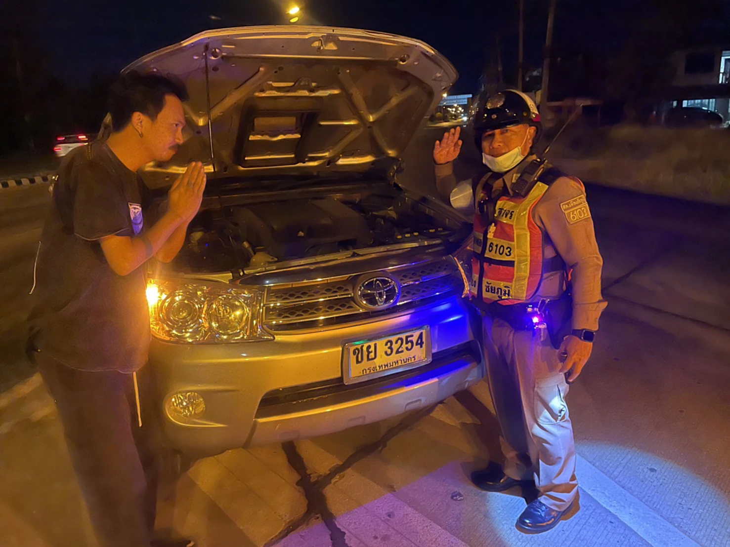 เมื่อเวลา 21.50 น. วันที่ 3 มกราคม 2569 ร.ต.ต.พิทยาคม แก้วทน รอง สว.(จร.) สภ.เมืองชัยภูมิ ขณะปฏิบัติหน้าที่อำนวยความสะดวกจราจร ในช่วงเทศกาลวันหยุดปีใหม่ ขณะที่มีประชาชนกำลังทยอยกลับไปทำงาน โดยใช้เส้นทางผ่านพื้นที่จังหวัดชัยภูมิ ซึ่งได้พบประชาชนประสบเหตุรถจอดเสียบริเวณจุดบริการแยกโรงต้ม จึงรีบเข้าตรวจสอบเพื่อเร่งให้การช่วยเหลือ