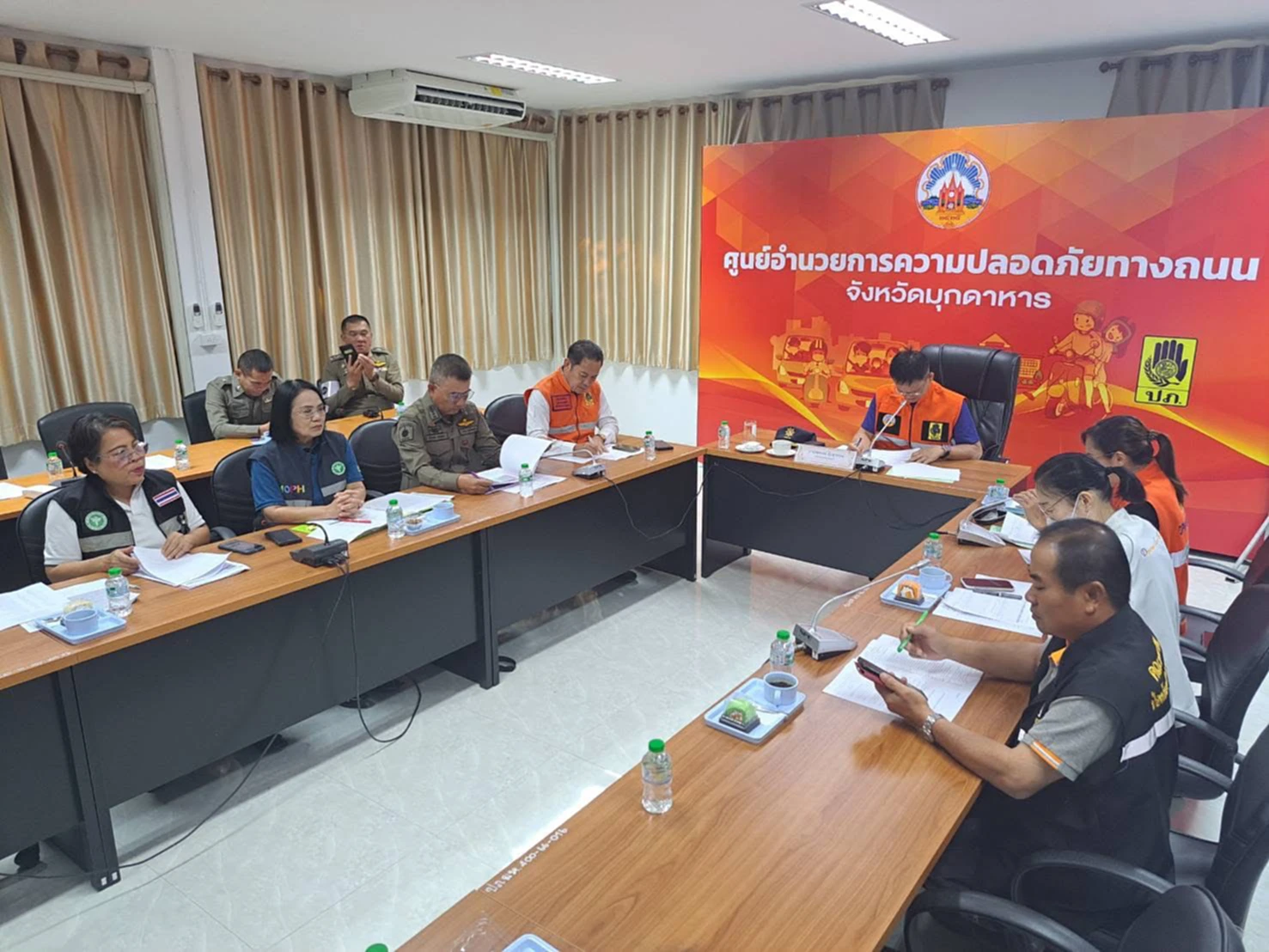 วันที่ 4 มกราคม 2569 ณ ห้องประชุมกองอำนวยการป้องกันและบรรเทาสาธารณภัยจังหวัดมุกดาหาร จังหวัดมุกดาหาร มีการประชุมคณะกรรมการศูนย์ปฏิบัติการป้องกันและลดอุบัติเหตุทางถนนช่วงเทศกาลปีใหม่ พ.ศ. 2569 เพื่อติดตามและสรุปผลการดำเนินงานตามมาตรการ “ช่วงควบคุมเข้มข้น” ระหว่างวันที่ 30 ธันวาคม 2568 – 5 มกราคม 2569 โดยมีนายสมพงษ์ คุ้มสุวรรณ ปลัดจังหวัดมุกดาหาร เป็นประธานการประชุม พร้อมด้วยหน่วยงานที่เกี่ยวข้องร่วมรายงานสถานการณ์และผลการบังคับใช้กฎหมายด้านความปลอดภัยทางถนน