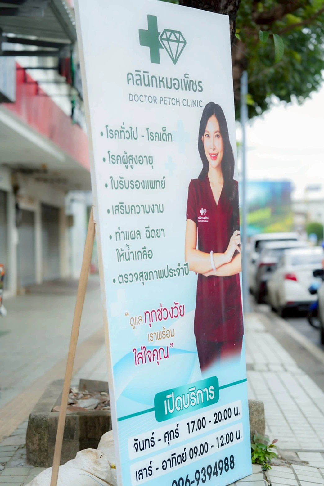คลินิกเวชกรรมหมอเพ็ชร เป็นคลินิกดูแลสุขภาพครบวงจร ให้บริการตรวจรักษาโรคทั่วไป โรคเด็ก โรคผิวหนัง อาการไข้ เจ็บคอ ปวดศีรษะ ไมเกรน บ้านหมุน โรคกระดูกและข้อ บริการทำแผล ฉีดยา ให้น้ำเกลือ ตรวจสุขภาพประจำปี ดูแลผู้สูงอายุ ออกใบรับรองแพทย์ รวมถึงบริการด้านความงาม โดยแพทย์ผู้เชี่ยวชาญที่มีใบประกอบวิชาชีพถูกต้อง เปิดให้บริการวันจันทร์–ศุกร์ เวลา 17.00–20.00 น. และวันเสาร์–อาทิตย์ เวลา 09.00–12.00 น. สอบถามข้อมูลเพิ่มเติมได้ทางเฟซบุ๊ก “คลินิกเวชกรรมหมอเพ็ชร” หรือโทรศัพท์ 096-939-4988