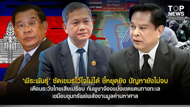 “พีระพันธุ์” ซัดเขมรไว้ใจไม่ได้ ชี้หยุดยิง 27 ธ.ค.ปัญหายังไม่จบ เตือนระวังไทยเสียเปรียบ “กัมพูชา” จ้องแบ่งเขตแดนทางทะเล เขมือบขุมทรัพย์พลังงานมูลค่ามหาศาล – Top News รายงาน