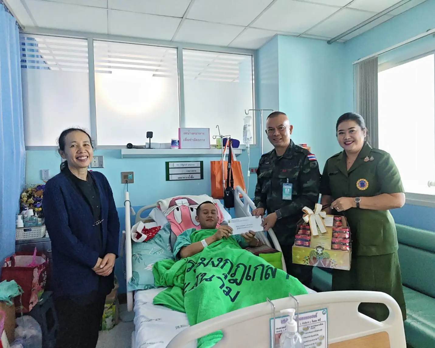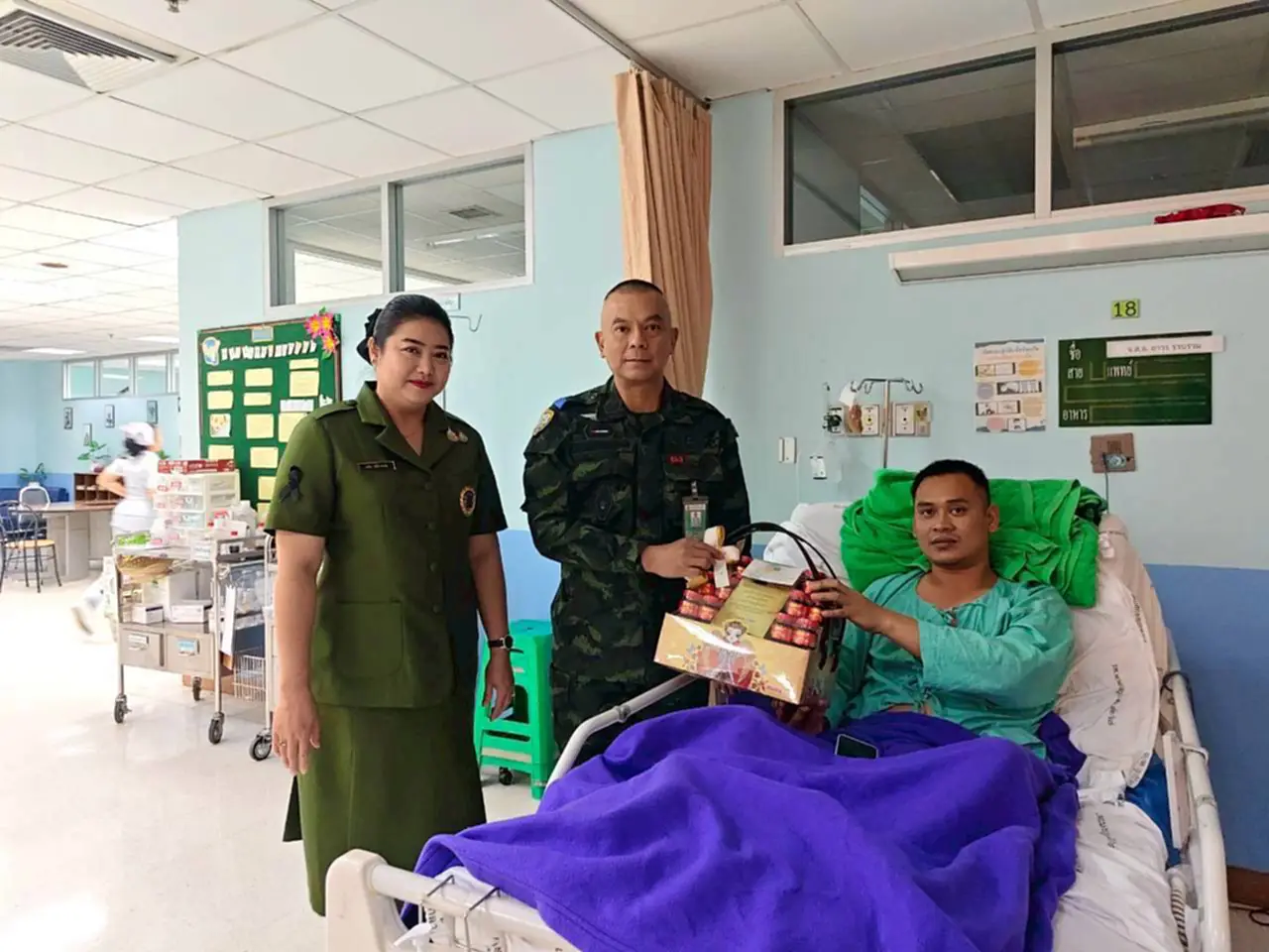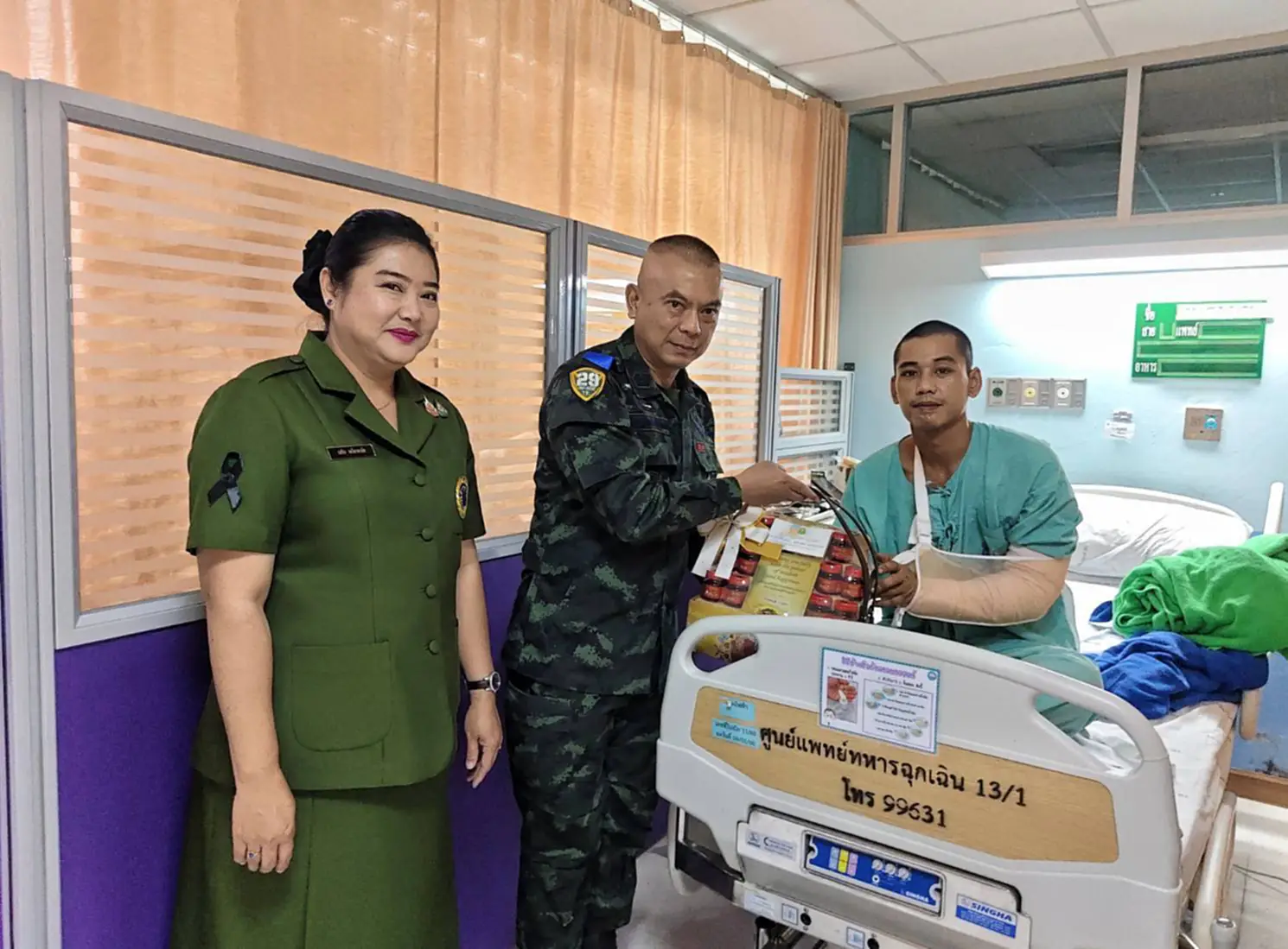 ผู้บังคับการกรมทหารราบเฉพาะกิจที่ 29 พร้อมประธานสมาคมแม่บ้านทหารบก สาขา ร.29 เยี่ยมให้กำลังใจกำลังพลที่ได้รับบาดเจ็บจากการปฏิบัติหน้าที่ชายแดน ไทย – กัมพูชา พร้อมชื่นชมปฏิบัติหน้าที่ด้วยความทุ่มเทเสียสละ