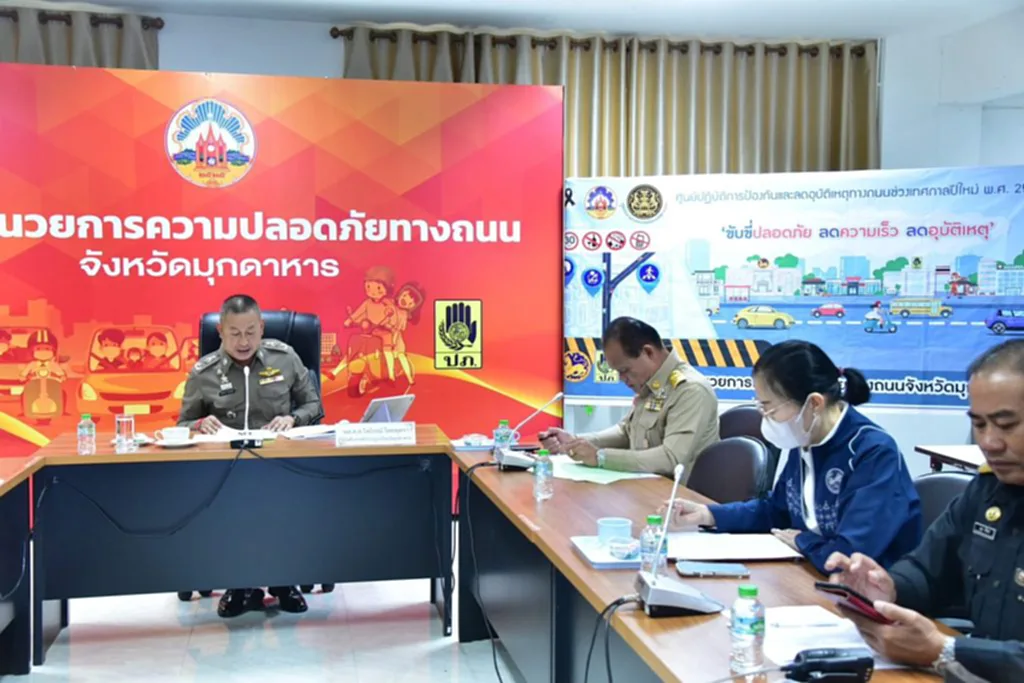 วันที่ 5 มกราคม 2569 จังหวัดมุกดาหาร ประชุมสรุปผลการดำเนินงานป้องกันและลดอุบัติเหตุทางถนนช่วงเทศกาลปีใหม่ พ.ศ. 2569 ตามมาตรการ “ช่วงควบคุมเข้มข้น” ระหว่างวันที่ 30 ธันวาคม 2568 – 5 มกราคม 2569 โดยมี พล.ต.ต.ไพโรจน์ ไทยพุทรา ผู้บังคับการตำรวจภูธรจังหวัดมุกดาหาร เป็นประธาน พร้อมหน่วยงานที่เกี่ยวข้องเข้าร่วมรายงานผล