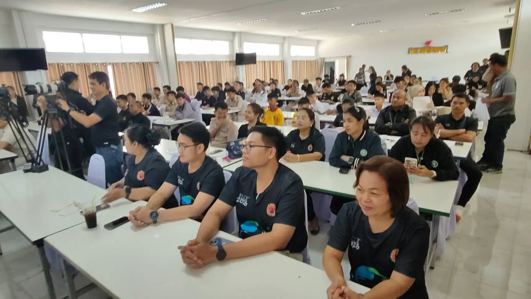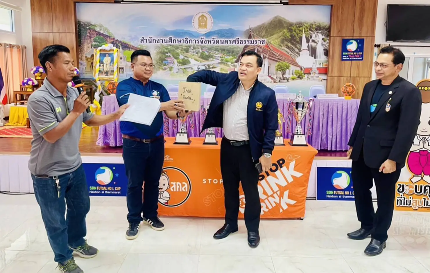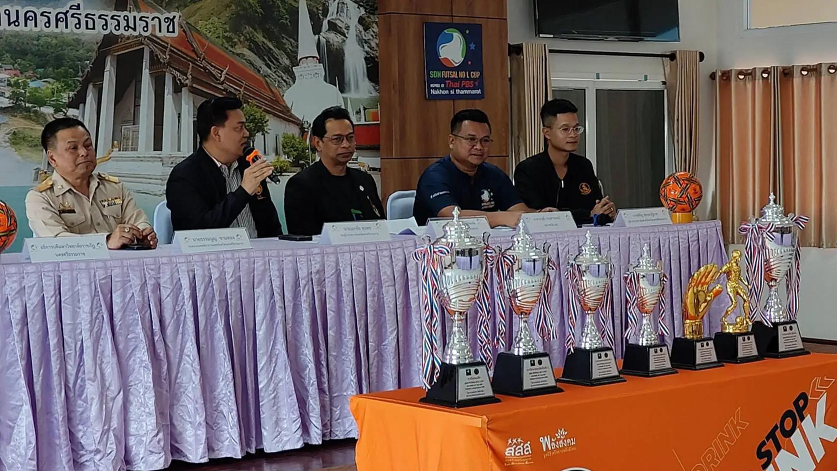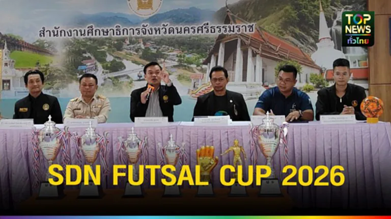 วันที่ 5 ม.ค. 2569 ที่ห้องประชุมสำนักงานศึกษาธิการจังหวัดนครศรีธรรมราช อ.พระพรหม จ.นครศรีธรรมราช นายเอกชัย สุนทร รองผู้ว่าราชการจังหวัดนครศรีธรรมราช เป็นประธานการแถลงข่าวและจับฉลากแบ่งสายการแข่งขันฟุตซอลเยาวชน SDN FUTSAL CUP 2026 ชิงแชมป์จังหวัดนครศรีธรรมราช ครั้งที่ 8 ชิงถ้วยรางวัลเกียรติยศ นายสมชาย ลีหหล้าน้อย ผู้ว่าราชการจังหวัดนครศรีธรรมราช โดยมีนายอาคม สุชาติพงษ์ ศึกษาธิการจังหวัดนครศรีธรรมราช นายธรรมนูญ ชามทอง รองนายแพทย์สาธารณสุขจังหวัดนครศรีธรรมราช ผู้แทนอธิการบดีมหาวิทยาลัยราชภัฎนครศรีธรรมราช และนายวรวุฒิ ประสานพจน์ ผู้อำนวยการศูนย์ควบคุมป้องกันสารเสพติดและปัจจัยเสี่ยงจังหวัดนครศรีธรรมราช ร่วมแถลงข่าวต่อสื่อมวลชน