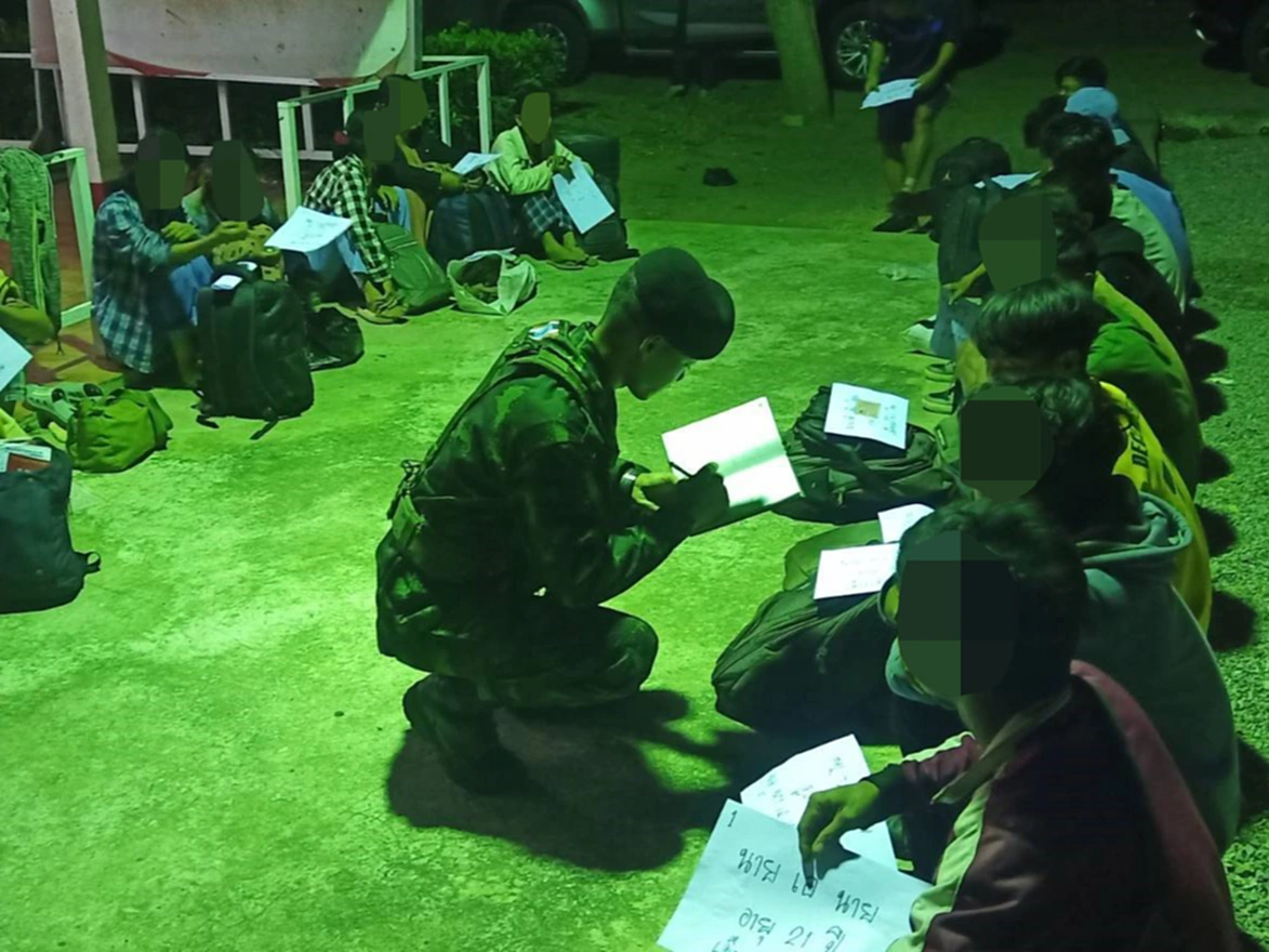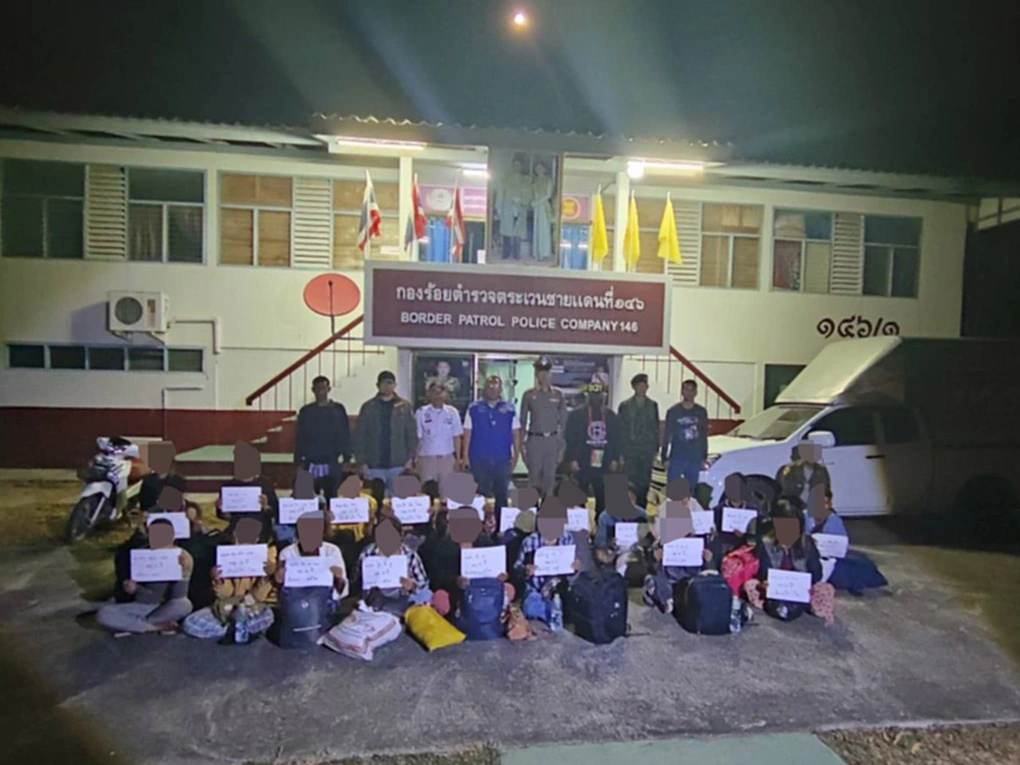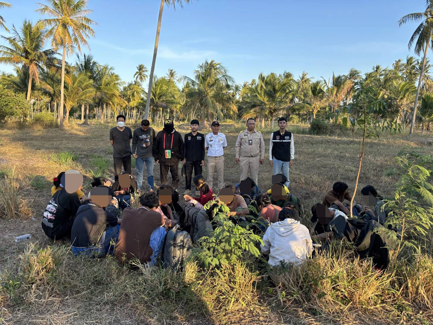 เมื่อวันที่ 5 ม.ค. 2569 หน่วยเฉพาะกิจจงอางศึก กองกำลังสุรสีห์ สนธิกำลังร่วมกับตำรวจตระเวนชายแดนที่ 146 ฝ่ายปกครอง และ สภ.คลองวาฬ เข้าตรวจสอบบริเวณริมสระน้ำภายในสวนมะพร้าว หมู่ 7 ต.คลองวาฬ อ.เมือง จ.ประจวบคีรีขันธ์ หลังได้รับแจ้งจากแหล่งข่าวว่ามีกลุ่มบุคคลต้องสงสัยหลบซ่อนตัวอยู่ในพื้นที่ ผลการตรวจสอบพบชาวต่างด้าวสัญชาติเมียนมา จำนวน 20 คน แบ่งเป็นชาย 12 คน หญิง 8 คน ไม่พบเอกสารแสดงตนหรือหลักฐานการอนุญาตเข้าเมืองอย่างถูกต้อง
