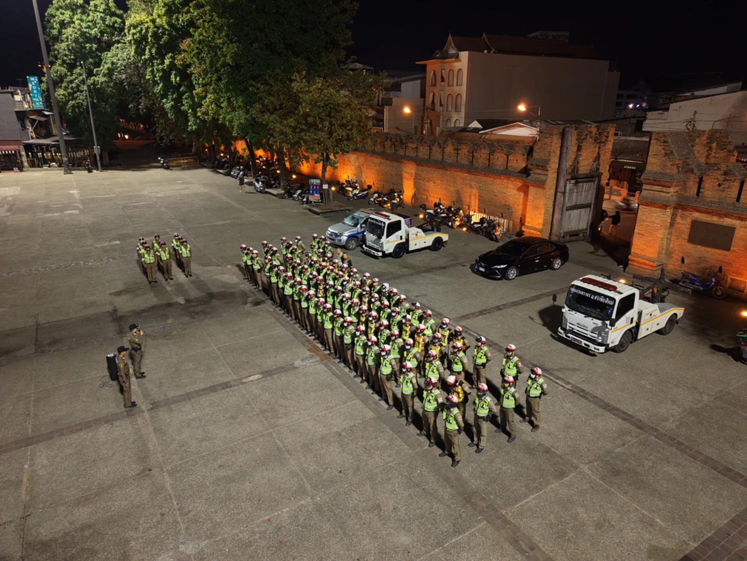 เมื่อวันที่ 5 มกราคม 2569 เวลา 06.15 น.พ.ต.อ.มนัสชัย อินทร์เถื่อน ผกก.กลุ่มงานจราจร ภ.จว.เชียงใหม่ ,พ.ต.ท.ศักดา โชติพัฒนโภคิน รอง ผกก.ฯ พร้อมด้วย สารวัตร กลุ่มงานจราจรตำรวจภูธรจังหวัดเชียงใหม่ ได้ร่วมกันทำการ ปล่อยแถวกำลังพล เพื่อออกปฏิบัติหน้าที่อำนวยความสะดวกด้านการจราจรในพื้นที่เขตเมืองเชียงใหม่ โดยมีการ ตรวจสอบความเรียบร้อยของเครื่องแบบ เครื่องแต่งกาย อุปกรณ์ประจำกาย เพื่อให้การปฏิบัติงานเป็นไปอย่างมีมาตรฐาน และสร้างความเชื่อมั่นให้แก่ประชาชนผู้ใช้รถใช้ถนน