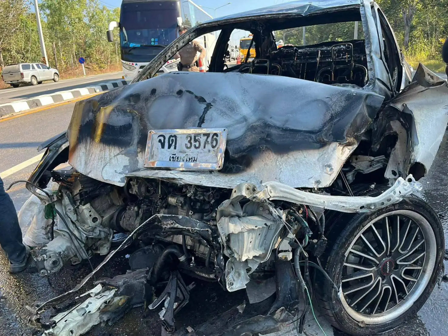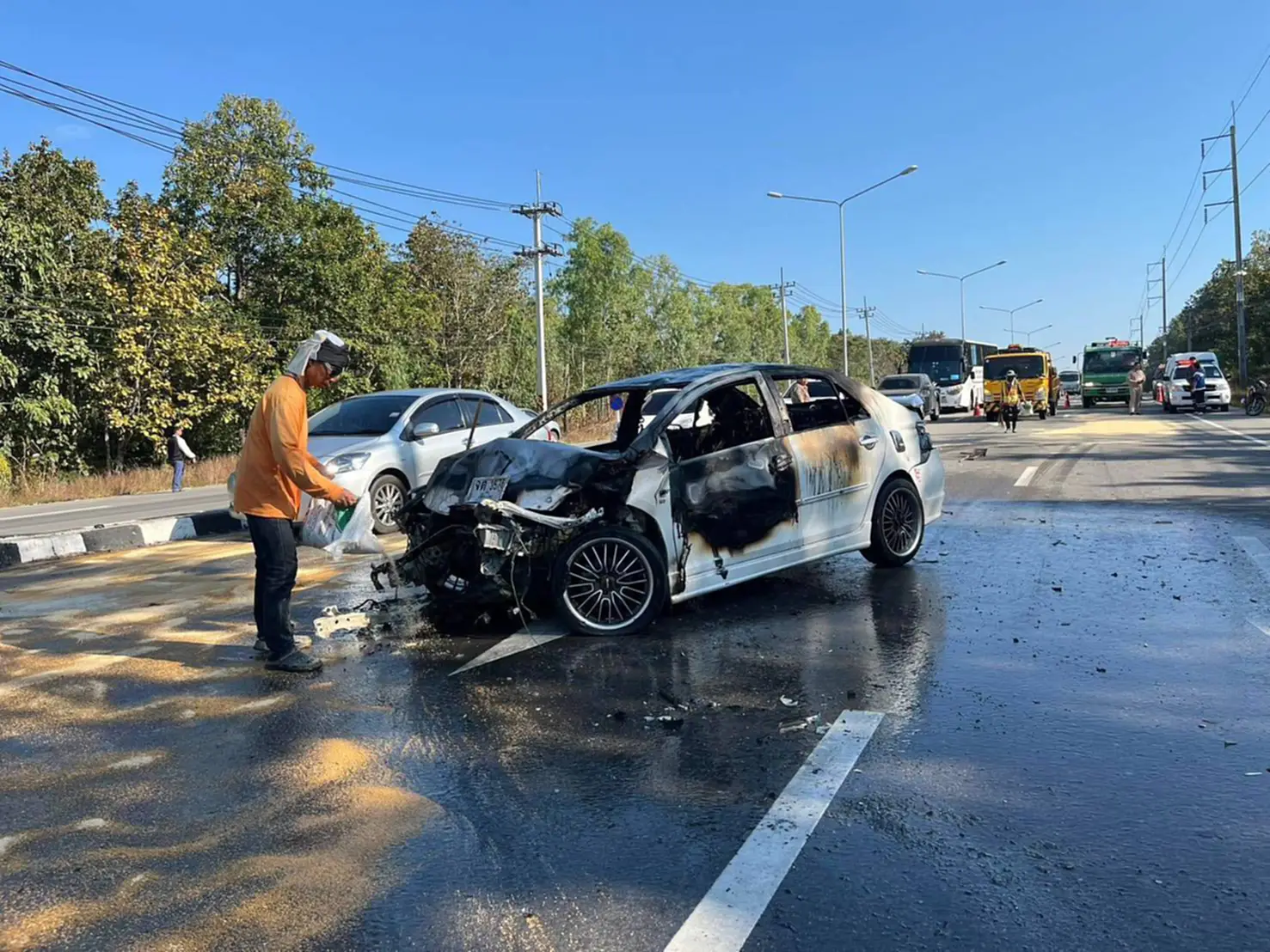 ทั้งนี้ เพลิงไหม้ได้สร้างความเสียหายแก่รถยนต์นั่งส่วนบุคคลอย่างรุนแรง เจ้าหน้าที่จากหลายหน่วยงานได้ร่วมกันปฏิบัติหน้าที่จนสามารถควบคุมสถานการณ์ได้เรียบร้อย