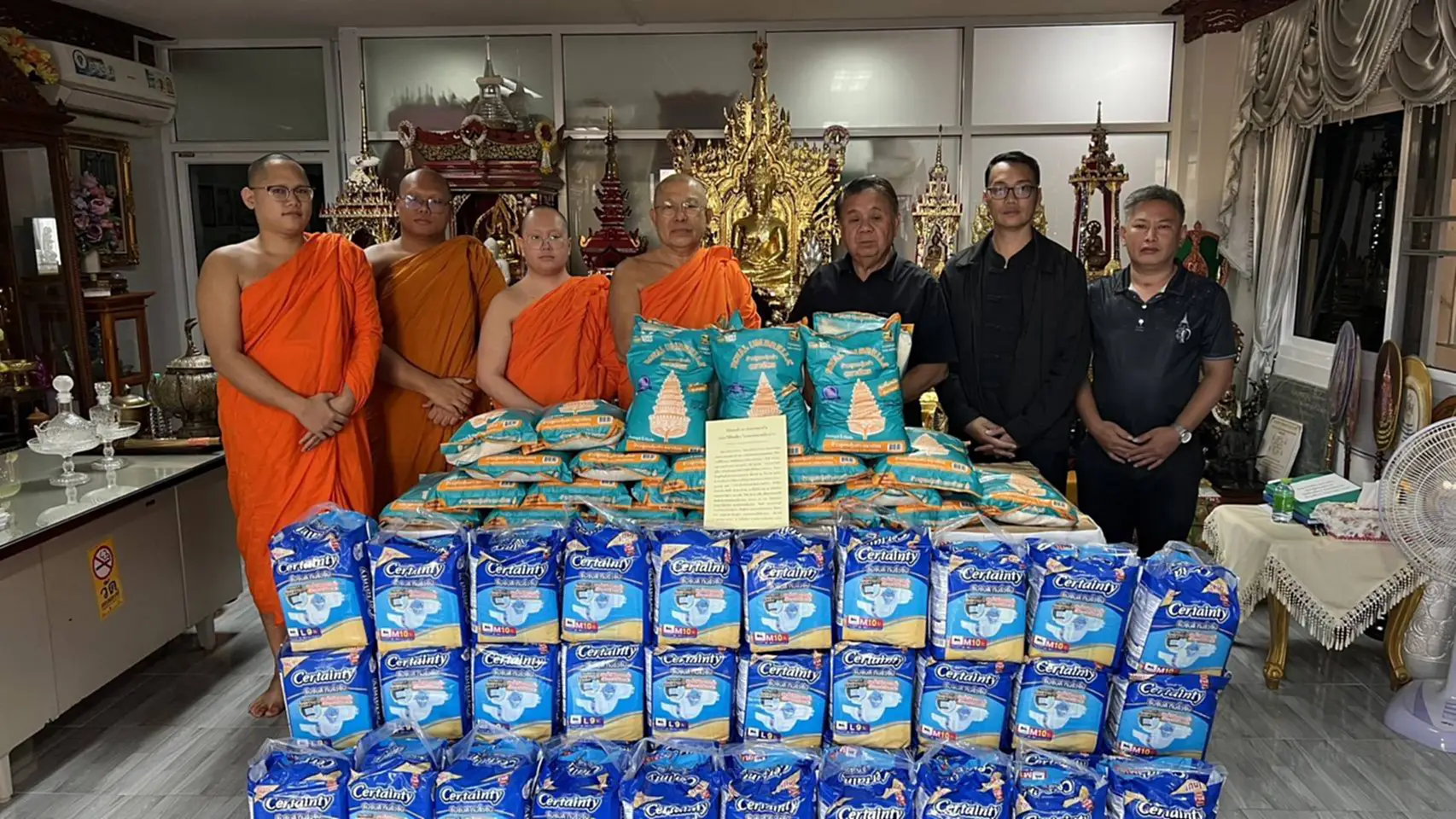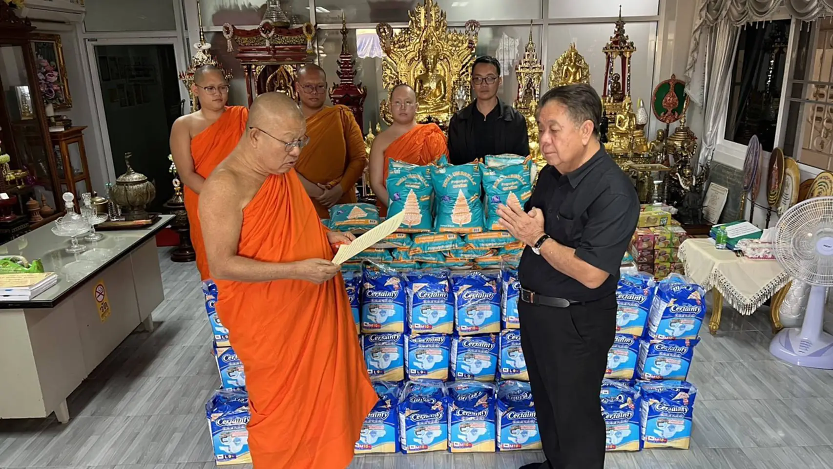 วันที่ 6 มกราคม 2568 ณ วัดมิ่งเมือง อำเภอเมืองน่าน จังหวัดน่าน พระสุนทรมุนี รองเจ้าคณะจังหวัดน่าน ผู้แทนคณะสงฆ์จังหวัดน่าน มอบข้าวสารเจ้า ขนาดถุงละ 5 กิโลกรัม จำนวน 25 ถุง พร้อมด้วยแพมเพิร์สผู้ใหญ่ ไซด์ L จำนวน 20 แพ็ก และไซด์ M จำนวน 20 แพ็ก ให้แก่เทศบาลเมืองน่าน โดยมีนายสุรพล เธียรสูตร นายกเทศมนตรีเมืองน่าน เป็นผู้รับมอบ