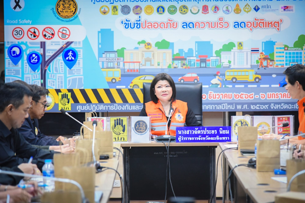 วันที่ 6 มกราคม 2569 เวลา 10.00 น. ณ ห้องประชุมพระยาศรีสุนทรโวหารฯ (น้อย อาจารยางกูร) ชั้น 1 ศาลากลางจังหวัดฉะเชิงเทรา จังหวัดฉะเชิงเทราจัดประชุมคณะกรรมการศูนย์ปฏิบัติการป้องกันและลดอุบัติเหตุทางถนนช่วงเทศกาลปีใหม่ พ.ศ. 2569 เพื่อติดตามสถานการณ์อุบัติเหตุทางถนนในช่วงเทศกาลปีใหม่ (วันที่ 7 ของการรณรงค์)
