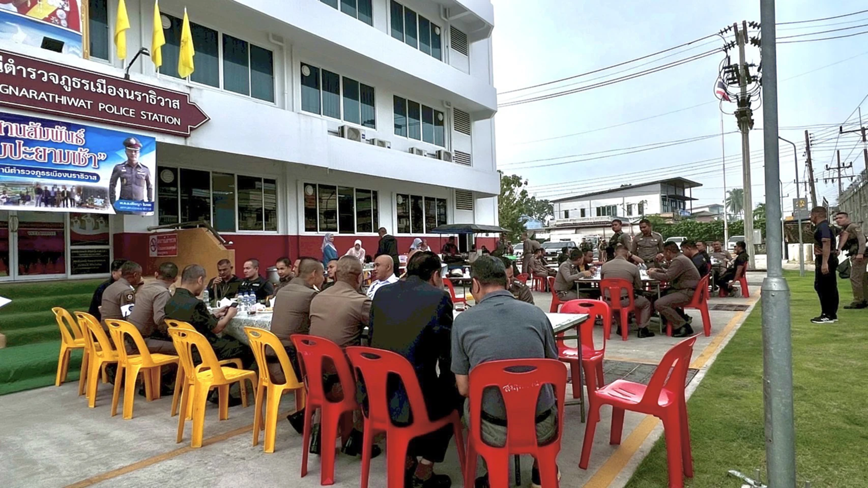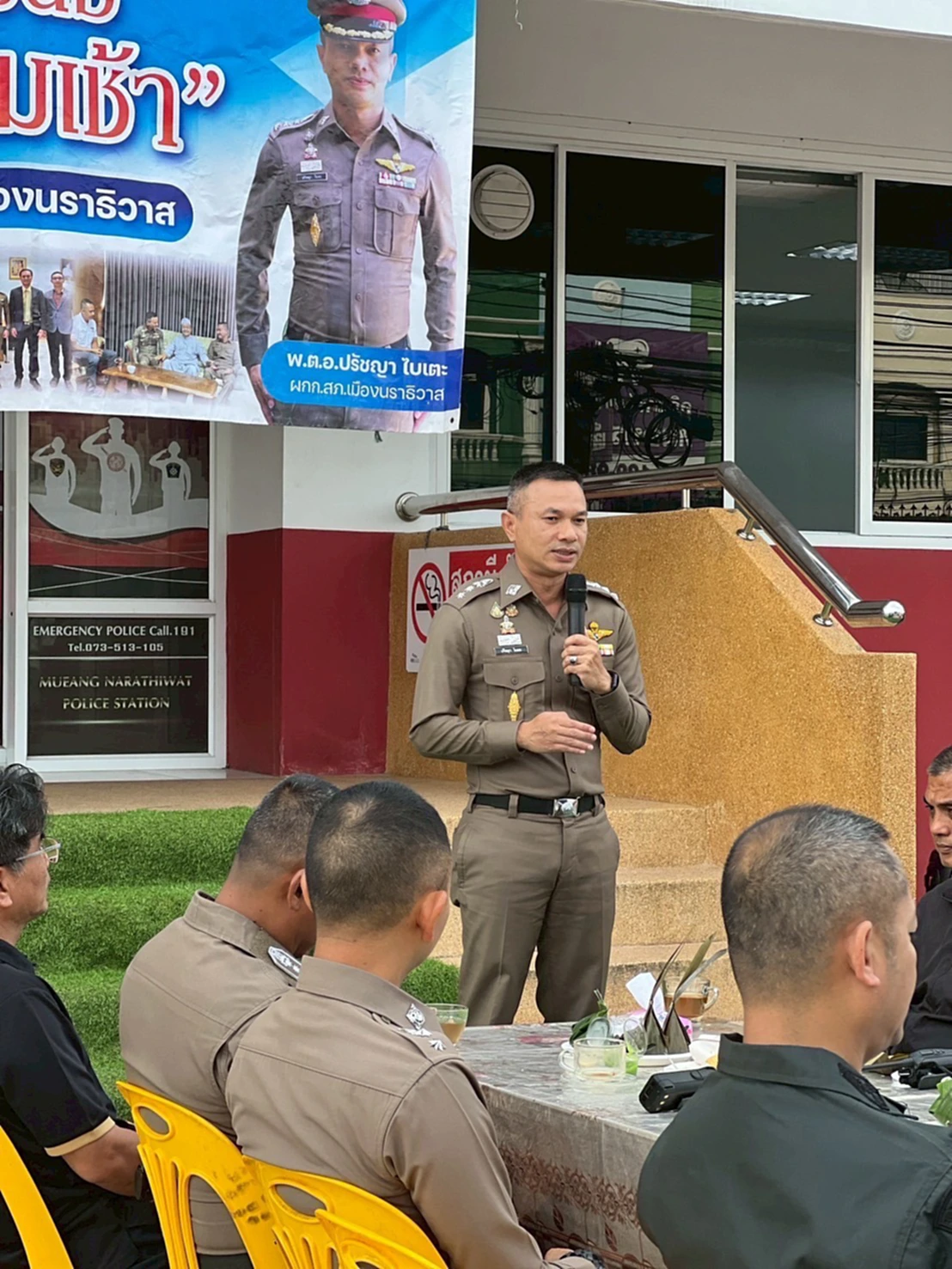 นอกจากนี้ พ.ต.อ.ปรัชญา ไบเตะ ยังให้ความสำคัญกับกำลังพลบรรจุใหม่ โดยถือโอกาสเชิญหน่วยงานที่เกี่ยวข้องร่วมพบปะกับฝ่ายบริหาร ระดับรอง ผกก. และ สว. ในสังกัด สภ.เมืองนราธิวาส เพื่อแนะนำตัวกำลังพลที่ได้รับการบรรจุแต่งตั้งเมื่อวันที่ 8 ธ.ค.68 ให้หัวหน้าส่วนราชการและข้าราชการตำรวจในพื้นที่ได้รู้จักในคราวเดียวกัน โดยมีผู้แทนจากหลายหน่วยงาน อาทิ นายอำเภอเมืองนราธิวาส รอง ผบก.ภ.จว.นราธิวาส ผู้บังคับหน่วยเฉพาะกิจตำรวจนราธิวาส 93 หน่วยทหาร ฝ่ายปกครอง คณะกรรมการตรวจสอบและติดตามการบริหารงานตำรวจ (กต.ตร.) รวมถึงหน่วยงานการศึกษาและราชการอื่น ๆ เข้าร่วมกิจกรรมอย่างพร้อมเพรียง