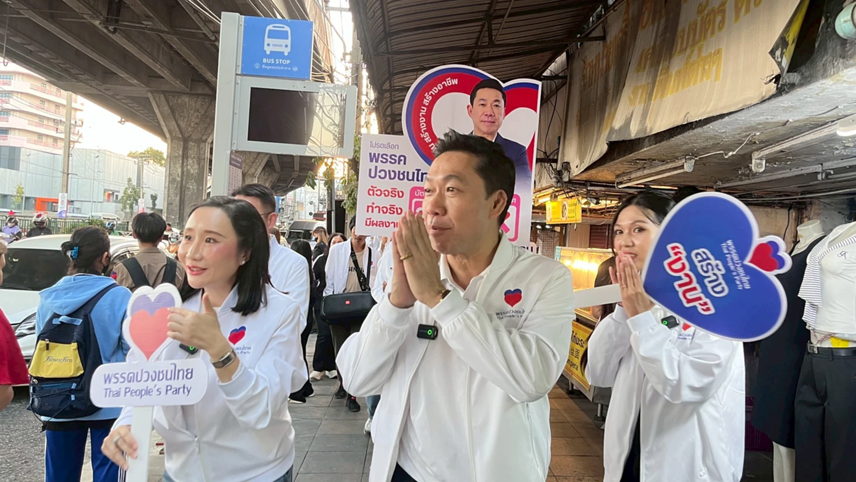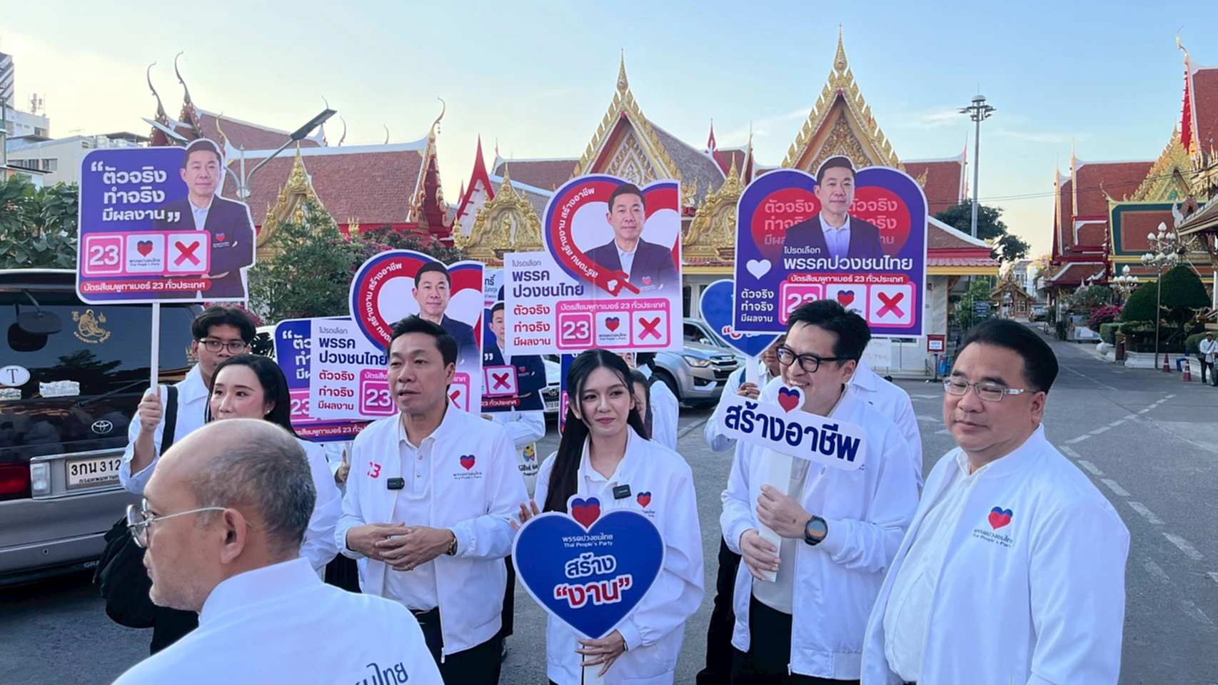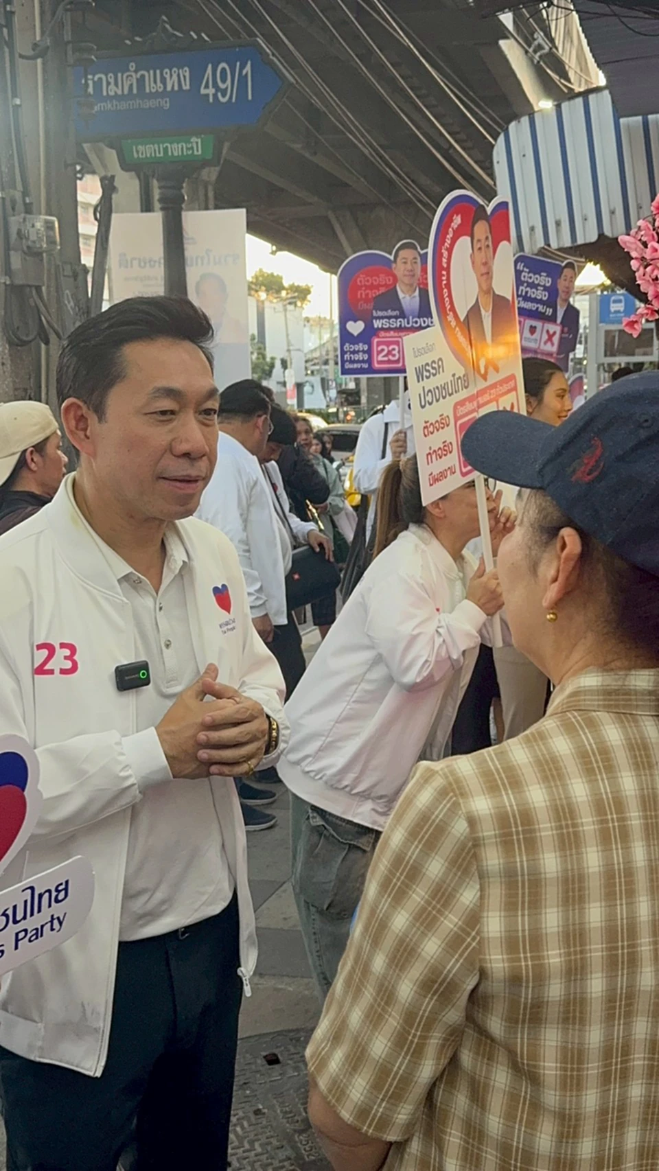 นายเอกสิทธิ์ คุณานันทกุล หัวหน้าพรรคปวงชนไทย ผู้สมัครสมาชิกสภาผู้แทนราษฎรแบบบัญชีรายชื่อ หมายเลข 23 นำทีมตะลุยเดินหาเสียงตั้งแต่บริเวณหน้าวัดเทพลีลา ถนนรามคำแหง จนถึงตลาดนัดหน้า การกีฬาแห่งประเทศไทย (กกท.) หัวหมาก