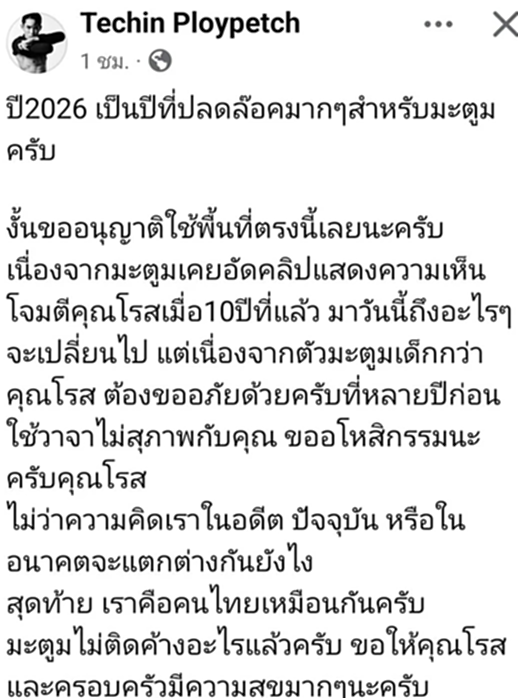 งั้นขออนุญาตใช้พื้นที่ตรงนี้เลยนะครับ เนื่องจากมะตูมเคยอัดคลิปแสดงความเห็นโจมตีคุณโรสเมื่อ 10 ปีที่แล้ว มาวันนี้ถึงอะไรๆ จะเปลี่ยนไป แต่เนื่องจากตัวมะตูมเด็กกว่าคุณโรส ต้องขออภัยด้วยครับที่หลายปีก่อนใช้วาจาไม่สุภาพกับคุณ ขออโหสิกรรมนะครับคุณโรส