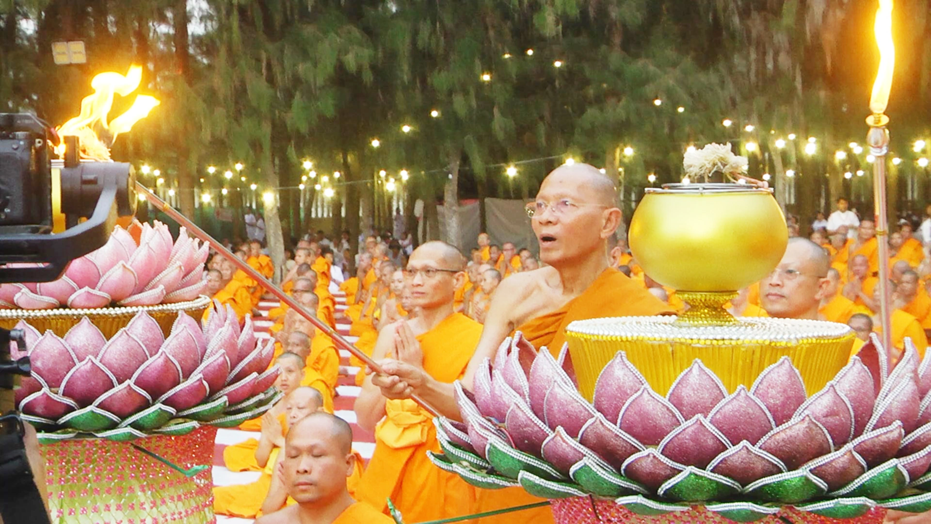 จากนั้น พระพรหมดิลก เจ้าอาวาสวัดสามพระยาวรวิหาร น้อมนำพวงมาลัยถวายบูชาพระบรมสารีริกธาตุ และรูปหล่อพระมงคลเทพมุนี (สด จนฺทสโร) พร้อมด้วย พระปริยัติวรคุณ เจ้าคณะอำเภอสองพี่น้อง เจ้าอาวาสวัดสองพี่น้อง พระอารามหลวง นำคณะสงฆ์ธรรมยาตรา 1,142 รูป และพุทธศาสนิกชนจุดประทีปถวายเป็นพุทธบูชา และบูชาธรรมพระมงคลเทพมุนี (สด จนฺทสโร)