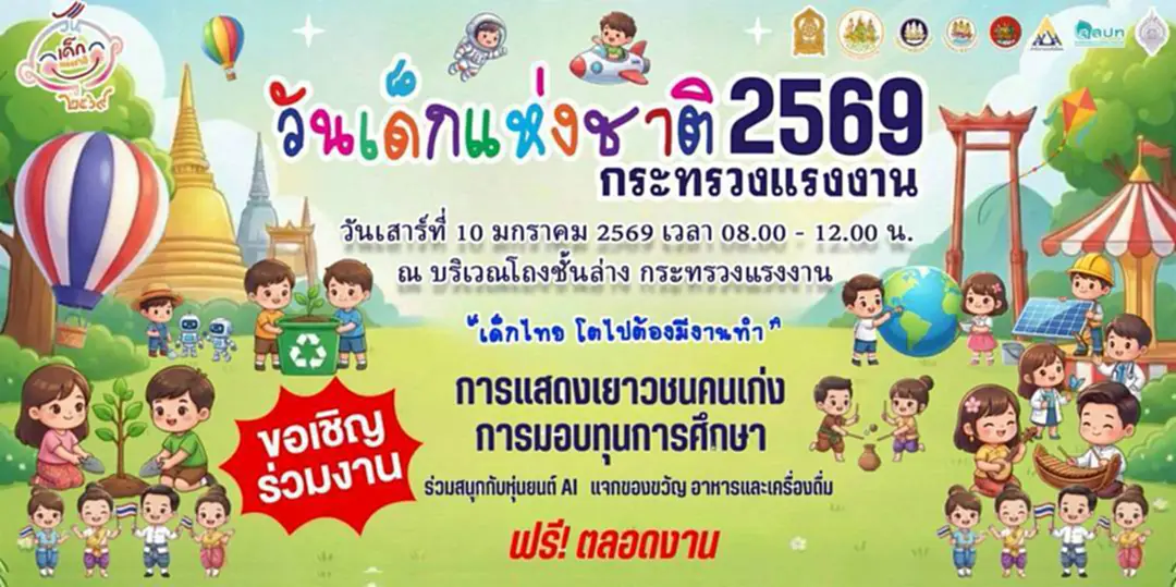 ซึ่งในปีนี้ กระทรวงแรงงานร่วมกับสมาคมแม่บ้านกระทรวงแรงงาน และสถานประกอบการภาคเอกชน จัดกิจกรรม ฉลองวันเด็กแห่งชาติ ประจำปี 2569 ของกระทรวงแรงงาน ในวันเสาร์ที่ 10 มกราคมนี้ ตั้งแต่เวลา 08.00 น. เป็นต้นไป ณ บริเวณโถงชั้นล่าง อาคารกระทรวงแรงงาน ถนนมิตรไมตรี เขตดินแดง กรุงเทพมหานคร โดยจัดขึ้นภายใต้แนวคิด “เด็กไทย โตไปต้องมีงานทำ” โดยมุ่งเน้นให้เด็ก ๆ และเยาวชนได้สนุกสนานสร้างสรรค์ พร้อมเรียนรู้และสัมผัสประสบการณ์โลกอาชีพและเทคโนโลยีปัญญาประดิษฐ์ หรือ AI สู่การพัฒนาความรู้ความสามารถ เติบโต และพร้อมก้าวเข้าสู่สังคมแห่งการทำงานในอนาคต ผ่านบูธกิจกรรมส่งเสริมความรู้ จากหน่วยงานในสังกัดกระทรวงแรงงานและสถานประกอบการภาคเอกชนที่เข้าร่วมมากมาย