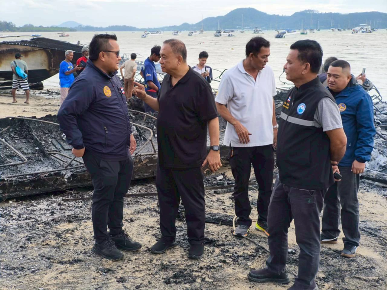 ด้านนายนิรัตน์ พงษ์สิทธิถาวร ผู้ว่าราชการจังหวัดภูเก็ต ได้สั่งการให้สำนักงานเจ้าท่าภูเก็ตจัดหาโฟมเข้าฉีดสกัดเพื่อป้องกันการกระจายตัวของน้ำมันในทะเล พร้อมมอบหมายให้เจ้าหน้าที่ตำรวจและพิสูจน์หลักฐานเข้าตรวจสอบพื้นที่ สืบสวนหาสาเหตุอย่างละเอียด รวมถึงตรวจสอบกล้องวงจรปิดบริเวณจุดเกิดเหตุและเส้นทางโดยรอบ เนื่องจากเรือทุกลำมีการเติมน้ำมันเต็มถังก่อนเกิดเหตุ ทั้งนี้ ในช่วงสายเมื่อระดับน้ำทะเลสูงขึ้น เจ้าหน้าที่สามารถเข้าเคลื่อนย้ายเรือออกจากพื้นที่ได้ โดยผู้ว่าราชการจังหวัดได้กำชับให้เร่งดำเนินการเพื่อลดผลกระทบต่อสิ่งแวดล้อมทางทะเลและความเสียหายในระยะยาว