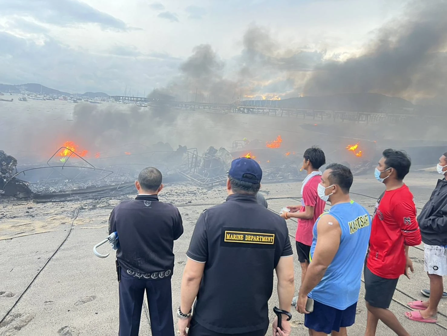 ขณะเกิดเหตุ เจ้าหน้าที่กู้ภัยและเจ้าหน้าที่ป้องกันและบรรเทาสาธารณภัยจากเทศบาลตำบลฉลอง เทศบาลตำบลราไวย์ เทศบาลตำบลวิชิต เทศบาลตำบลกะรน รวมถึงศูนย์ไข่มุก อบจ.ภูเก็ต ได้ระดมรถดับเพลิงและกำลังเจ้าหน้าที่เข้าฉีดน้ำสกัดเพลิงอย่างเร่งด่วน โดยใช้วิธีตัดเชือกและแยกเรือออกจากกันเพื่อป้องกันการลุกลาม อย่างไรก็ตาม การปฏิบัติเป็นไปด้วยความยากลำบาก เนื่องจากอยู่ในช่วงน้ำทะเลลง ทำให้ไม่สามารถควบคุมเพลิงได้ทันที