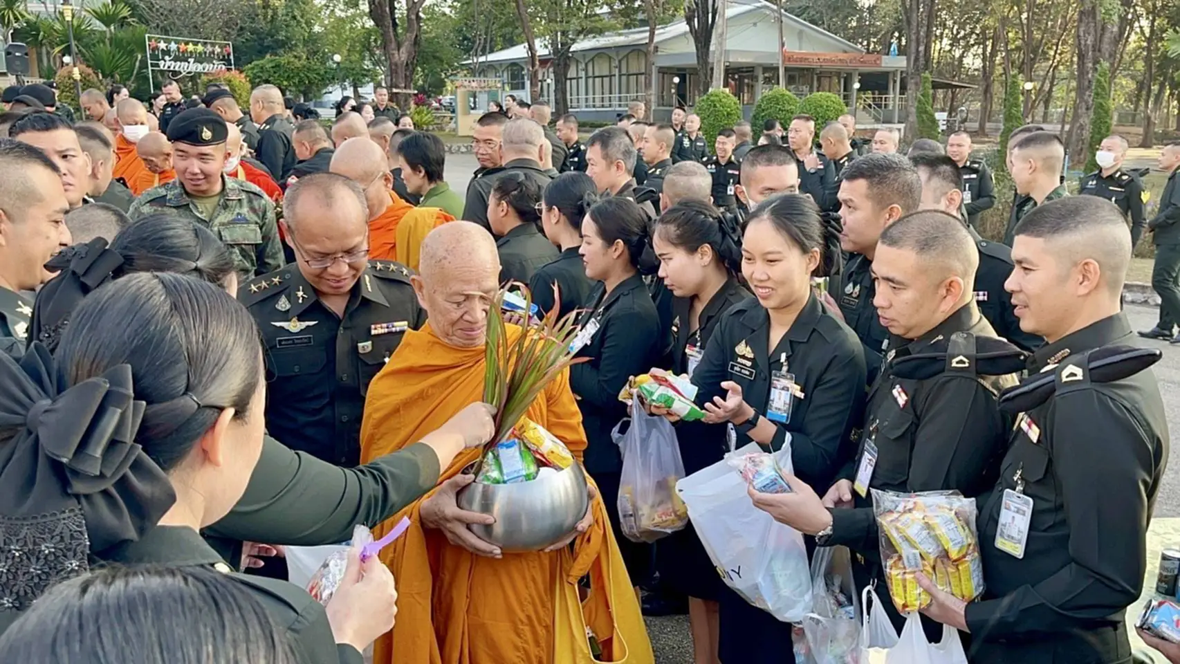 ทั้งนี้ได้รับเมตตาจาก พระครูกันตธรรมโกวิท เป็นประธานฝ่ายสงฆ์ นำคณะสงฆ์ 9 รูป ออกรับบิณบาตรข้าวสารอาหารแห้งจากกำลังพลและครอบครัว เพื่อความเป็นสิริมงคล ให้เป็นการเริ่มต้นปีใหม่ด้วยใจเบิกบาน และมีความสุขในทุกๆ ด้าน ณ บริเวณหน้ากองบัญชาการมณฑลทหารบกที่ 32 ค่ายสุรศักดิ์มนตรี จังหวัดลำปาง