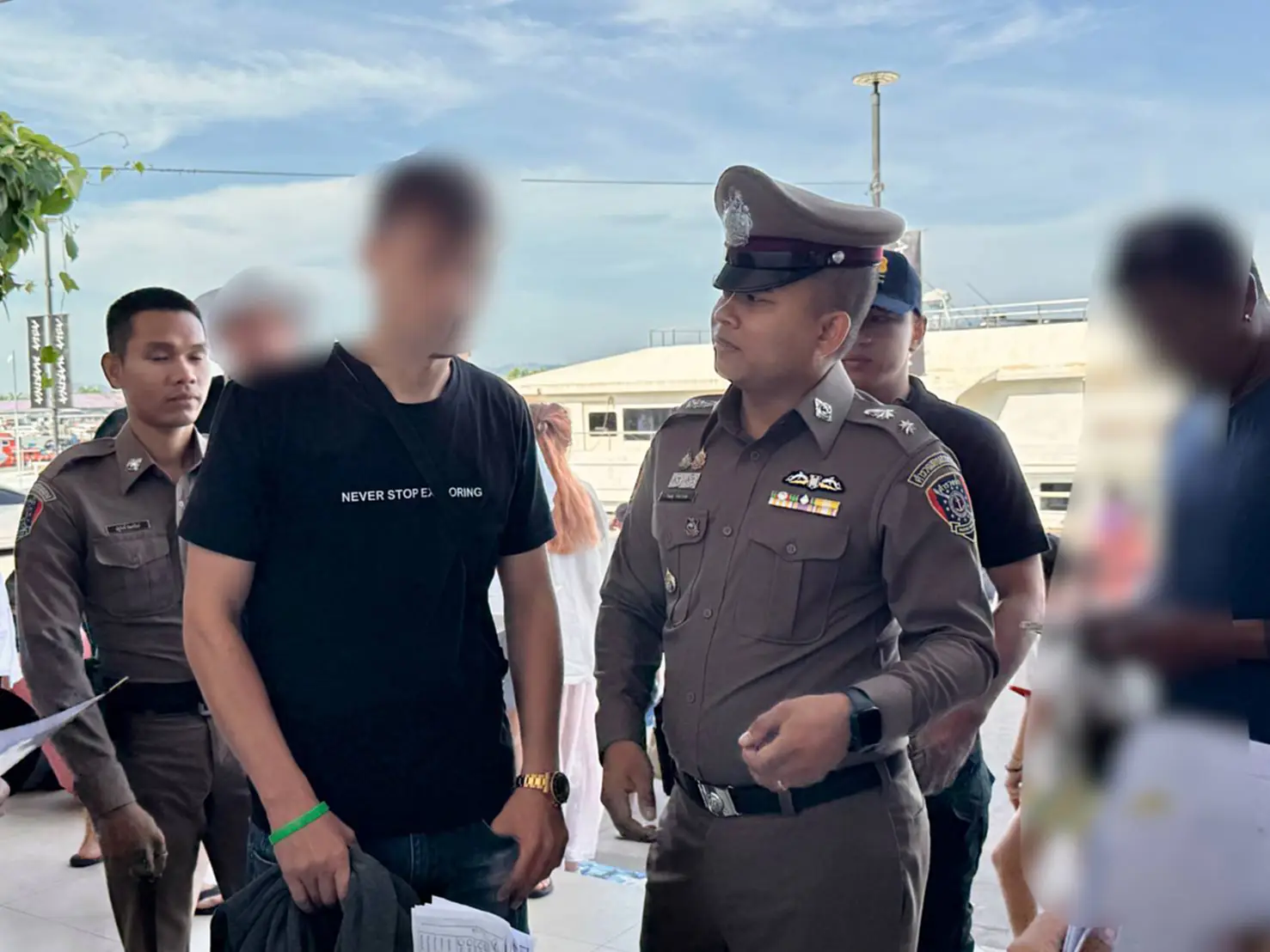 จนกระทั่งเจ้าหน้าที่ตำรวจชุดจับกุมเข้าตรวจสอบพื้นที่ พบ Mr.LAPA กำลังรับนักท่องเที่ยวที่ลงจากรถตู้และเชิญไปตรวจสอบรายชื่อจุดลงทะเบียน พร้อมอธิบายและแนะนำการท่องเที่ยว ก่อนจะพานักท่องเที่ยวลงเรือ เจ้าหน้าที่จึงแสดงตัวตรวจสอบเอกสาร แต่ Mr.LAPA ไม่สามารถนำเอกสารหนังสือเดินทางและใบอนุญาตทำงานมาแสดงได้ มีเพียงรูปถ่ายหนังสือเดินทางในโทรศัพท์มือถือ เจ้าหน้าที่จึงแจ้งข้อกล่าวหาและนำส่งพนักงานสอบสวน สภ.เมืองภูเก็ต เพื่อดำเนินคดีต่อไป โดยปฏิบัติการครั้งนี้เป็นการบังคับใช้กฎหมายอย่างเข้มงวดเพื่อรักษาความเป็นระเบียบเรียบร้อยและคุ้มครองอาชีพสงวนของคนไทย