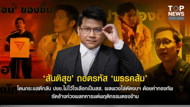 “สันติสุข” ถอดรหัส “พรรคส้ม” โดนกระแสตีกลับ ประชาชนไม่ไว้ใจเลือกเป็นสส. ผลพวงไล่ตัดงบฯ ด้อยค่ากองทัพ ซัดอ้างห่วงพลทหารแต่พฤติกรรมตรงข้าม – Top News รายงาน