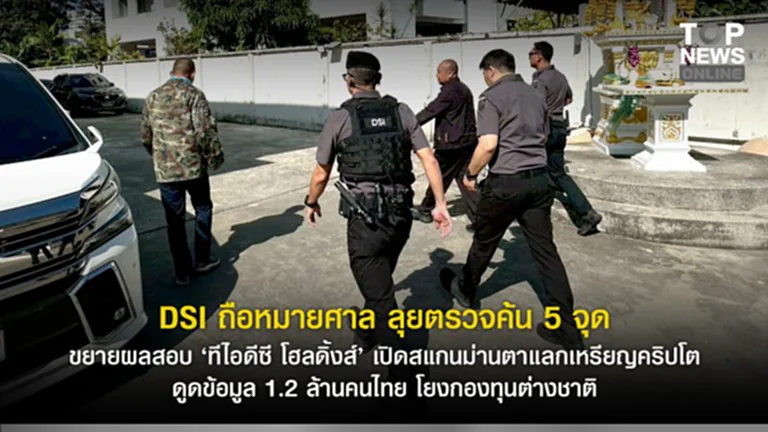 “ดีเอสไอ” ถือหมายศาล ลุยตรวจค้น 5 จุด ขยายผลสอบ “ทีไอดีซี โฮลดิ้งส์” เปิดสแกนม่านตาแลกเหรียญคริปโต ดูดข้อมูล 1.2 ล้านคนไทย โยงกองทุนต่างชาติ – Top News รายงาน