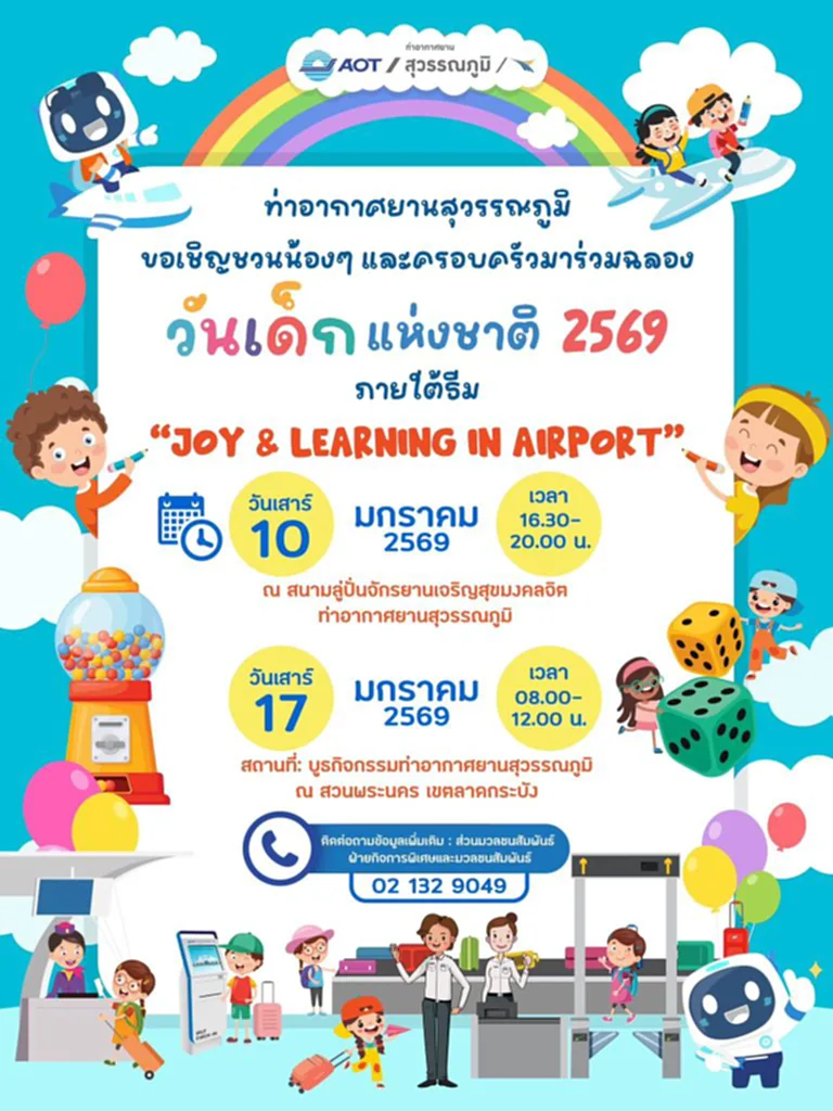 ท่าอากาศยานสุวรรณภูมิ เชิญชวนเด็กๆ และครอบครัว ร่วมกิจกรรมวันเด็ก 2569 ร่วมสนุก สร้างรอยยิ้ม และความทรงจำดีๆ