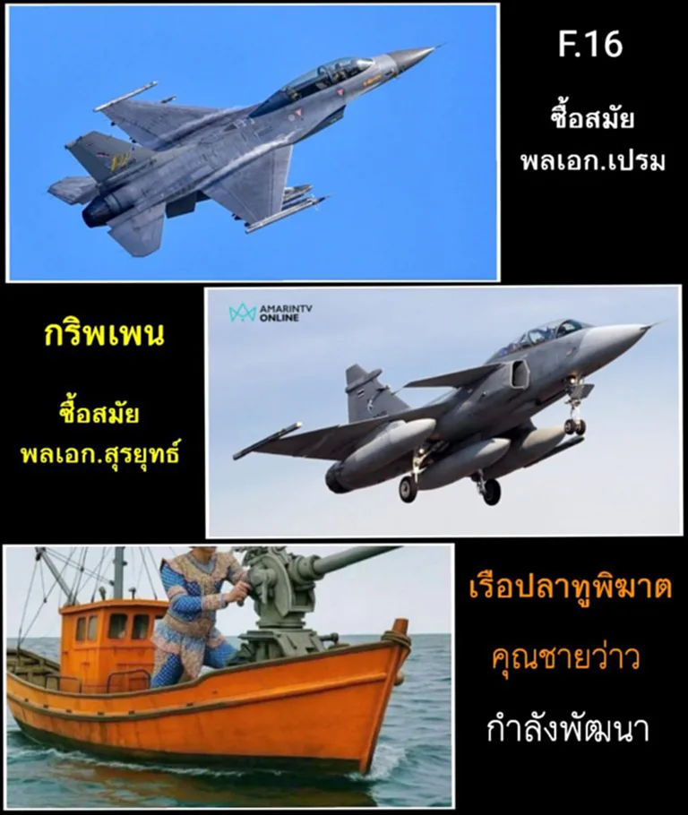 เครื่องบิน F-16 สั่งซื้อในสมัยพลเอกเปรม เป็นนายกรัฐมนตรี ล็อตแรก 12 ลำ .. แล้วค่อย ๆ เพิ่มจำนวนตามกาลเวลา ปัจจุบันมี 53 ลำ