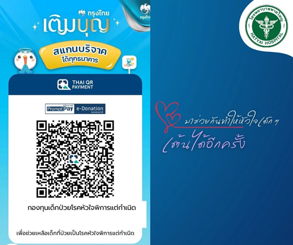 ความสำเร็จดังกล่าวยังแสดงถึงการสานต่อความร่วมมือทางวิชาการ ภายใต้บันทึกความเข้าใจ (MOU) ระหว่างโรงพยาบาลหาดใหญ่กับโรงพยาบาลมหาวิทยาลัย เพื่อร่วมกันพัฒนาสมรรถนะในการดูแลผู้ป่วยโรคหัวใจพิการแต่กำเนิดอย่างต่อเนื่อง ทั้งนี้ โรงพยาบาลหาดใหญ่ขอเชิญชวนประชาชนผู้มีจิตศรัทธา ร่วมสนับสนุนกองทุนผู้ป่วยเด็กโรคหัวใจพิการแต่กำเนิด เพื่อเปิดโอกาสให้ผู้ป่วยรายต่อไปได้เข้าถึงการรักษาด้วยการเปลี่ยนลิ้นหัวใจ โดยสามารถร่วมทำบุญได้ด้วยการสแกน QR Code ตามช่องทางที่โรงพยาบาลกำหนด เพื่อร่วมเป็นส่วนหนึ่งในการมอบโอกาสและคุณภาพชีวิตที่ดีให้กับเด็กไทยต่อไป