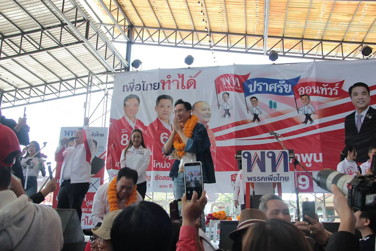 พรรคเพื่อไทย จัดเวทีปราศรัยใหญ่ โดยมี นายยศชนัน วงศ์สวัสดิ์ แคนดิเดตนายกรัฐมนตรี พรรคเพื่อไทย, นายสุริยะ จึงรุ่งเรืองกิจ ผู้อำนวยการการเลือกตั้งพรรคเพื่อไทย และแคนดิเดตนายกรัฐมนตรี พรรคเพื่อไทย และ นายณัฐวุฒิ ใสยเกื้อ ผู้อำนวยการครอบครัวเพื่อไทย เดินทางมาปราศรัยช่วยหาเสียงให้กับ นายชัยณรงค์ ภู่พิสิฐ ผู้สมัครรับเลือกตั้งสมาชิกสภาผู้แทนราษฎร(สส.) จังหวัดลำพูน เขตเลือกตั้ง 1 พรรคเพื่อไทย และ นายรังสรรค์ มณีรัตน์ ผู้สมัครรับเลือกตั้งสมาชิกสภาผู้แทนราษฎร จังหวัดลำพูน เขตเลือกตั้งที่ 2 พรรคเพื่อไทย ในวันที่( 9 ม.ค. 69 ) เวลา 10 นาฬิกา ณ ตลาดลำพูนจตุจักร ตำบลป่าสัก อำเภอเมืองลำพูน จังหวัดลำพูน
