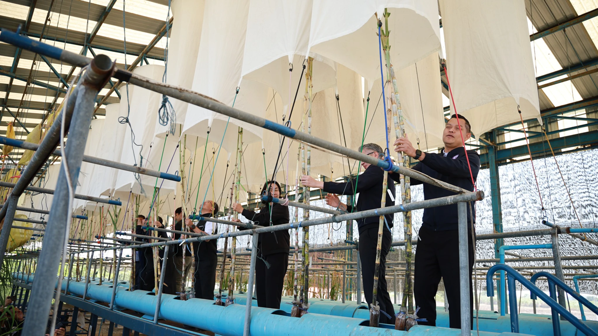 ในช่วงเช้า รัฐมนตรีและคณะได้เยี่ยมชมศูนย์ส่งเสริมอุตสาหกรรมอ้อยฯ ภาคที่ 1 ดูงานห้องปฏิบัติการชีวโมเลกุล และการปรับปรุงพันธุ์อ้อย ก่อนเดินทางต่อไปยัง บริษัท น้ำตาลท่ามะกา จำกัด เพื่อชมสาธิตการเก็บเกี่ยวอ้อยสดด้วยรถตัดอ้อยสมัยใหม่ และการทำงานของ Mobile Laboratory (รถปฏิบัติการเคลื่อนที่) ที่ช่วยวิเคราะห์คุณภาพอ้อยได้แม่นยำถึงหน้าไร่