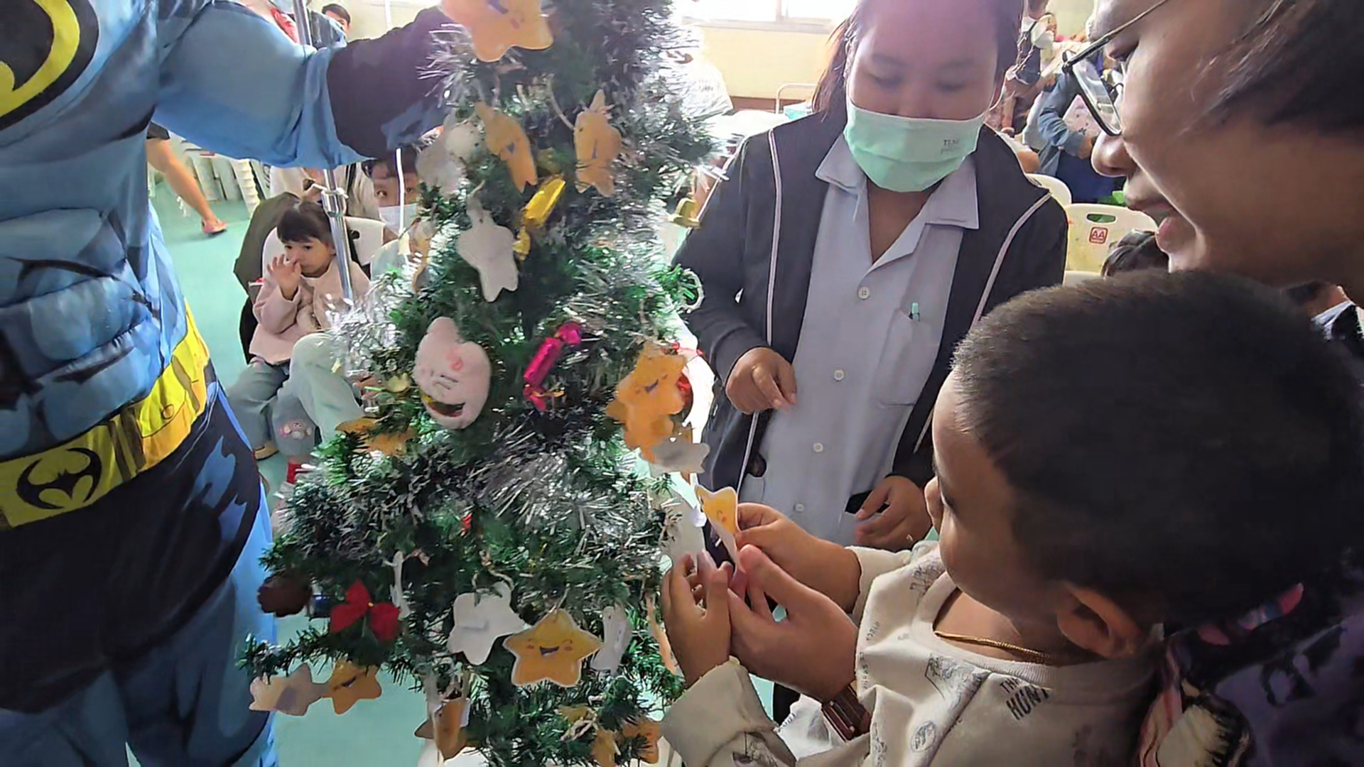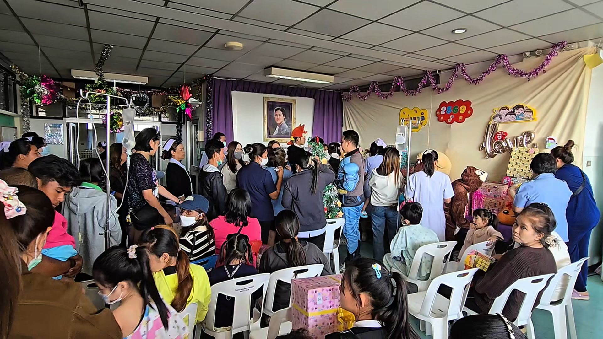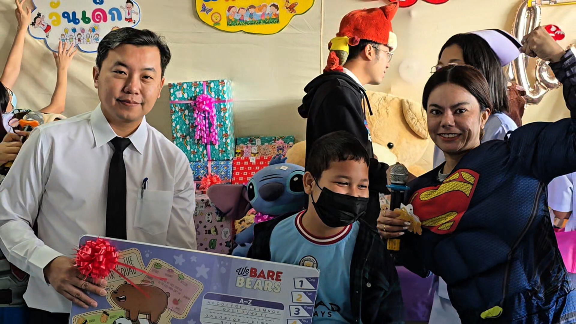 ซึ่งไม่สามารถออกไปร่วมกิจกรรมภายนอกได้ โดยบรรยากาศภายในงานเต็มไปด้วยความคึกคักและรอยยิ้ม เมื่อเหล่าคุณหมอ พยาบาล และบุคลากรทางการแพทย์ ร่วมกันสวมชุดซุปเปอร์ฮีโร่และตัวการ์ตูนขวัญใจเด็ก ๆ