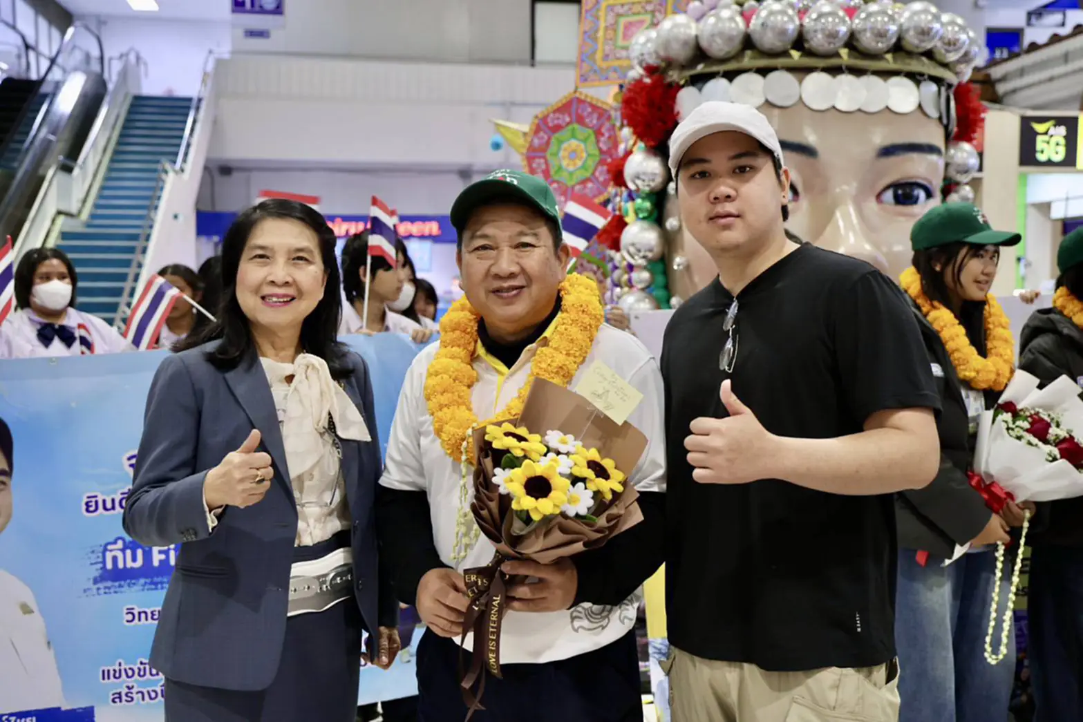 เมื่อวันที่ 9 มกราคม 2569 บรรยากาศที่ท่าอากาศยานแม่ฟ้าหลวง เชียงราย เป็นไปอย่างคึกคักและอบอุ่น นายนรศักดิ์ สุขสมบูรณ์ รองผู้ว่าราชการจังหวัดเชียงราย พร้อมด้วยคณะผู้บริหารสถานศึกษา คณะครู นักศึกษา และครอบครัว ร่วมต้อนรับทีมนักศึกษาสาขาวิชาวิจิตรศิลป์ วิทยาลัยอาชีวศึกษาเชียงราย ในนามทีม “Fighting Frost TH” ที่เดินทางกลับถึงมาตุภูมิพร้อมรางวัลชนะเลิศอันดับ 1 (First Prize) จากการแข่งขันแกะสลักหิมะนานาชาติ ICSSC 2026 ณ เมืองฮาร์บิน สาธารณรัฐประชาชนจีน