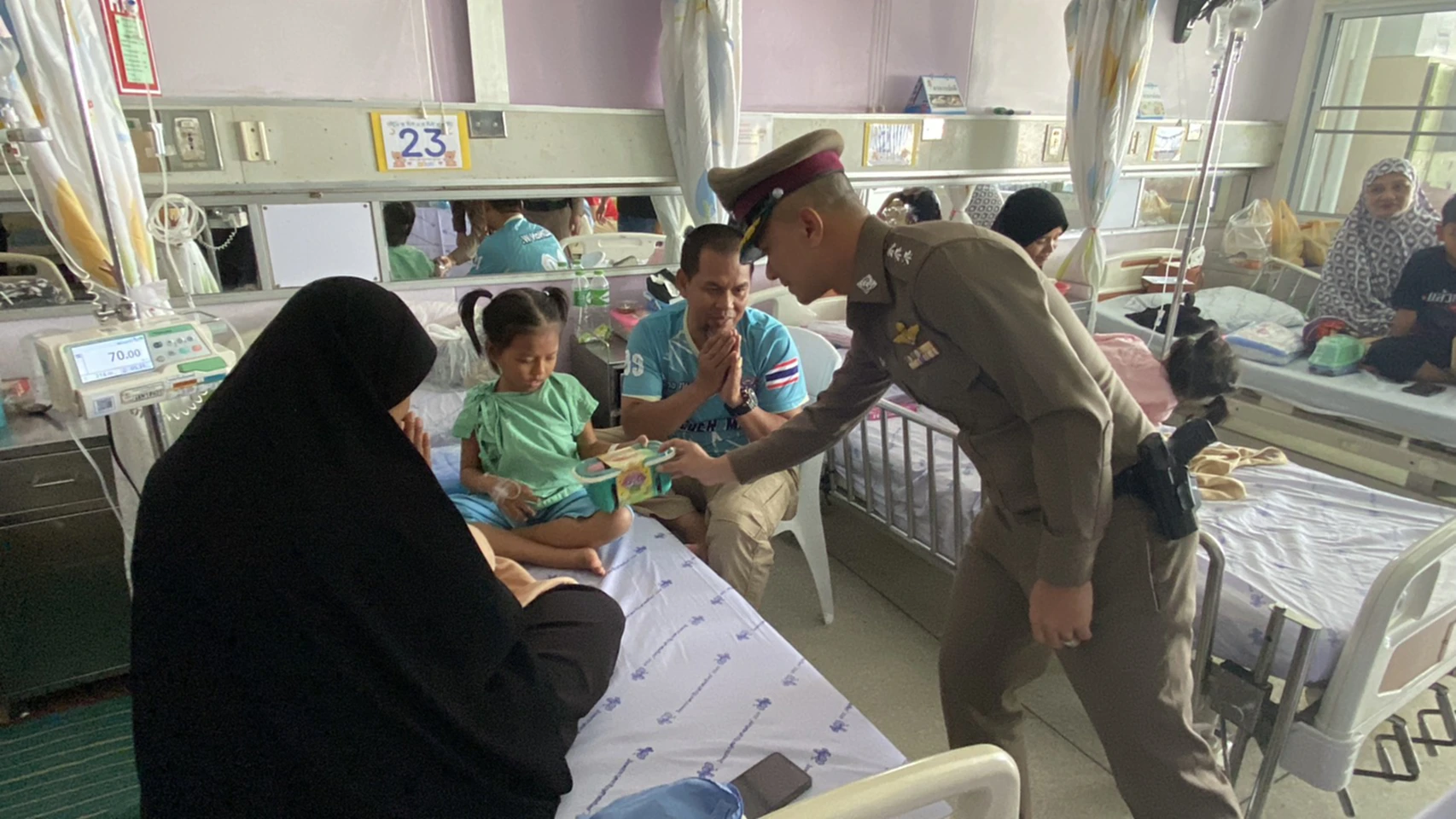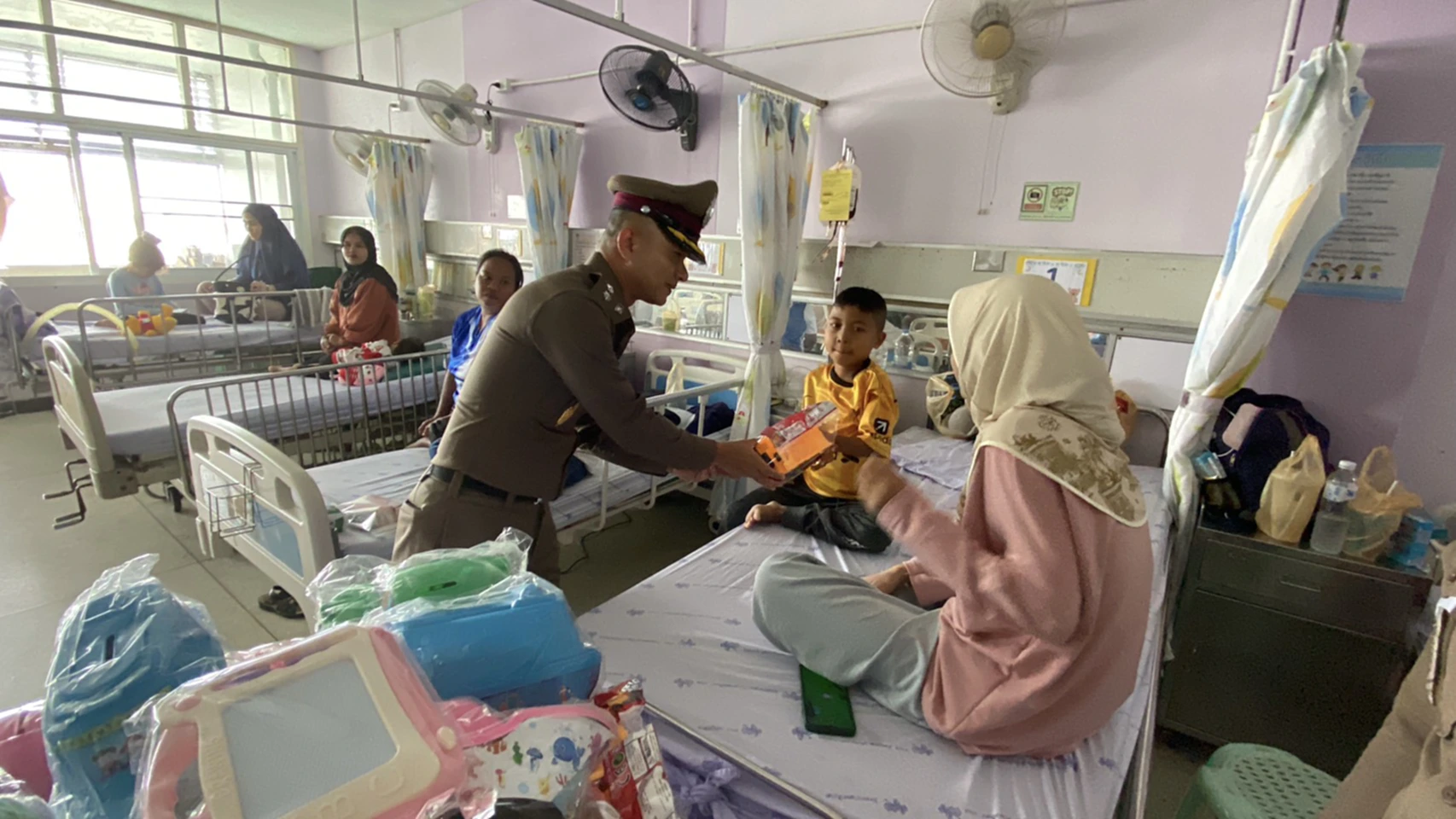 วันที่ 9 ม.ค. 2569 เจ้าหน้าที่ตำรวจจากสถานีตำรวจภูธรเมืองนราธิวาส นำโดย พ.ต.อ.ปรัชญา ไบเตะ ผู้กำกับการสถานีตำรวจภูธรเมืองนราธิวาส นำของขวัญและความสุขไปมอบให้แก่ผู้ป่วยเด็กที่กำลังรักษาตัวอยู่ ณ ตึกเปี่ยมสุข หอผู้ป่วยกุมารเวชกรรม โรงพยาบาลนราธิวาสราชนครินทร์ อ.เมือง จ.นราธิวาส เนื่องในโอกาสวันเด็กแห่งชาติ เพื่อสร้างรอยยิ้มและกำลังใจให้กับเด็กๆ ที่ไม่สามารถเดินทางออกไปร่วมกิจกรรมวันเด็กตามสถานที่ต่างๆ ได้ โดยบรรยากาศเป็นไปอย่างอบอุ่น เต็มไปด้วยรอยยิ้มของเด็กๆ และผู้ปกครอง
