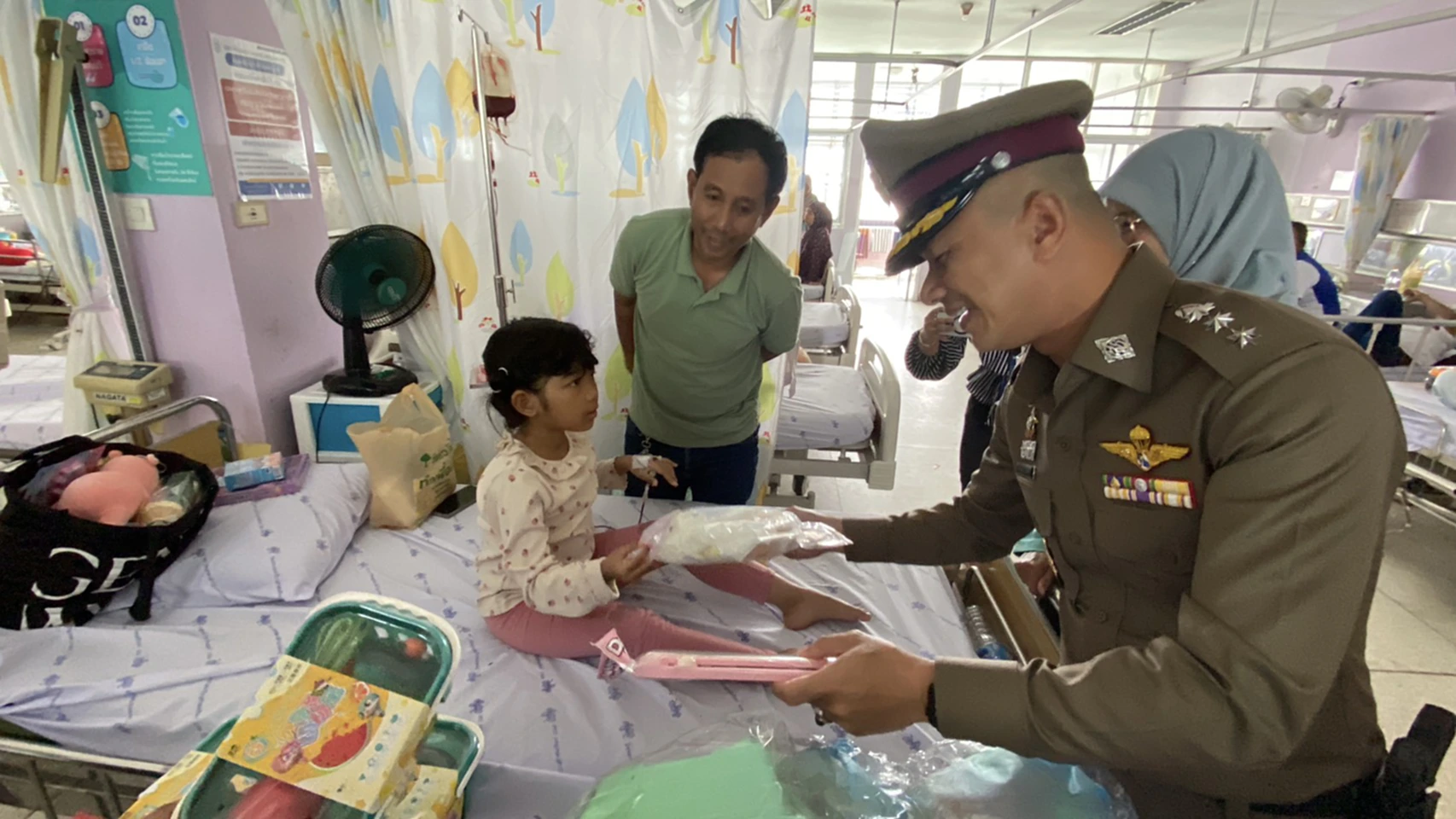 กิจกรรมครั้งนี้ เจ้าหน้าที่ตำรวจได้เดินแจกของเล่นและของขวัญให้กับผู้ป่วยเด็กถึงข้างเตียง พร้อมพูดคุยให้กำลังใจทั้งเด็กและผู้ปกครอง ซึ่งถือเป็นการเติมพลังใจที่สำคัญยิ่งในช่วงเวลาที่เด็กๆ ต้องต่อสู้กับอาการเจ็บป่วย พ.ต.อ.ปรัชญา ไบเตะ เปิดเผยว่า แนวคิดในการจัดกิจกรรมเกิดจากความตั้งใจที่อยากให้น้องๆ ซึ่งอยู่ระหว่างการรักษาตัว ได้สัมผัสบรรยากาศวันเด็กเช่นเดียวกับเด็กคนอื่นๆ และรู้สึกว่าไม่ได้ถูกทอดทิ้ง แต่ยังมีผู้ใหญ่และสังคมคอยห่วงใยอยู่เคียงข้าง
